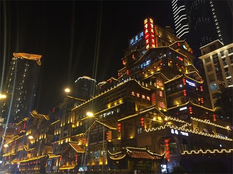 出来的时候已经亮灯了,晚上就去洪崖洞看夜景。