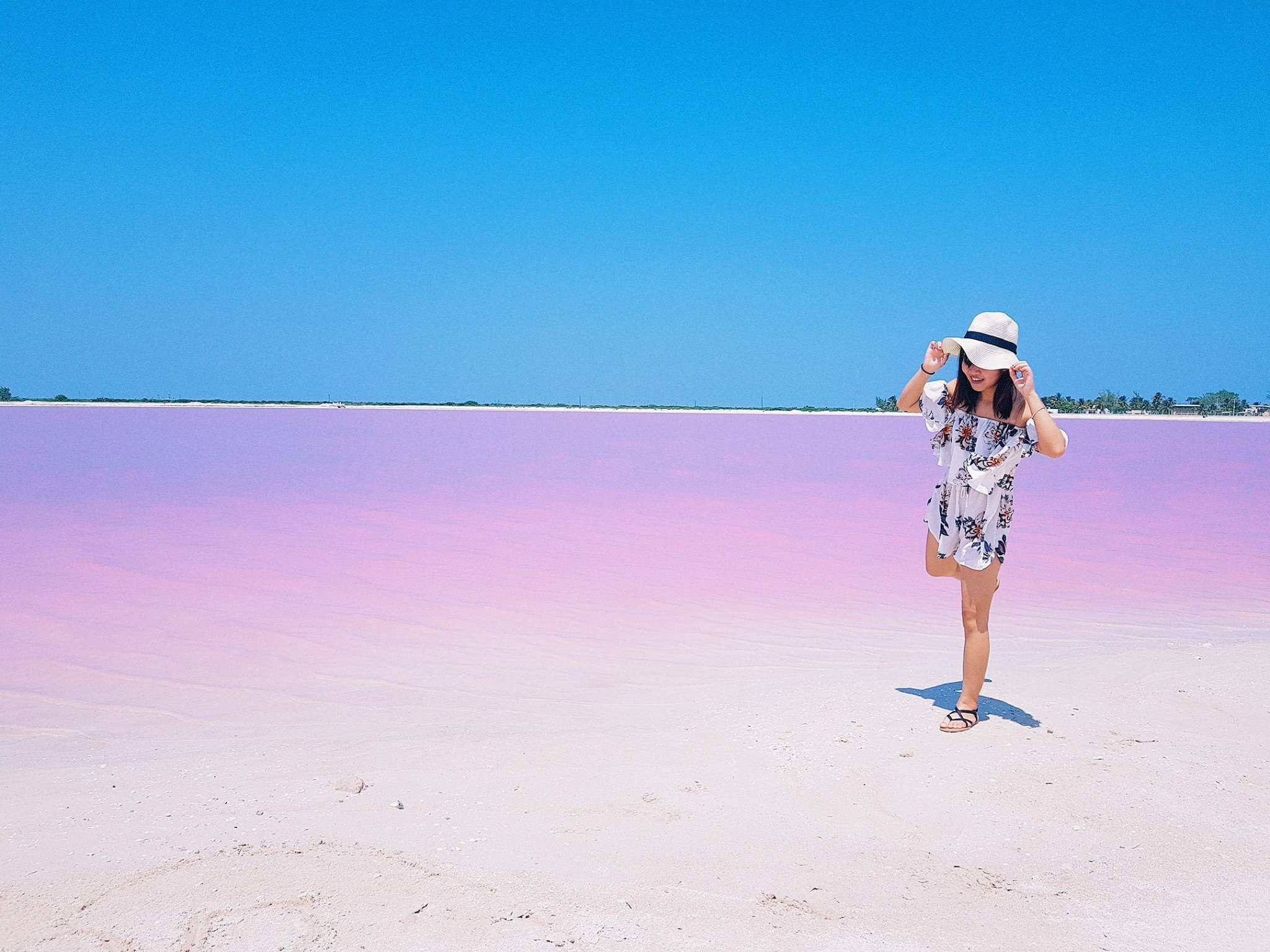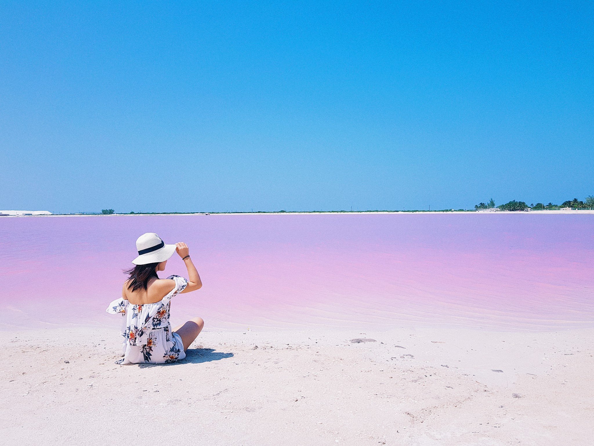 超神奇的粉红色,大家都慕名来拍照,可是从 坎昆 开车过来要差不多5小时单程,在 坎昆 有部分会...