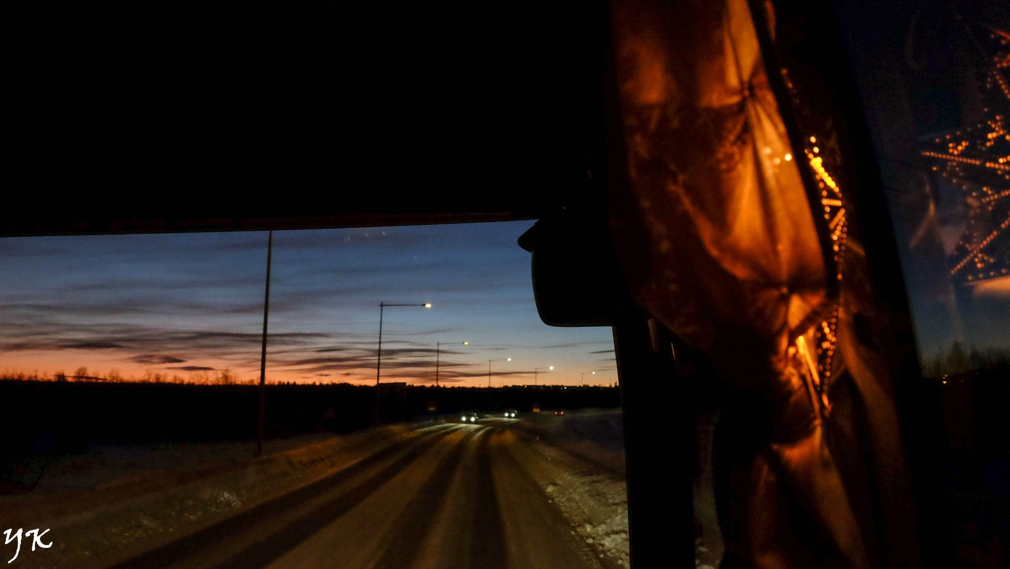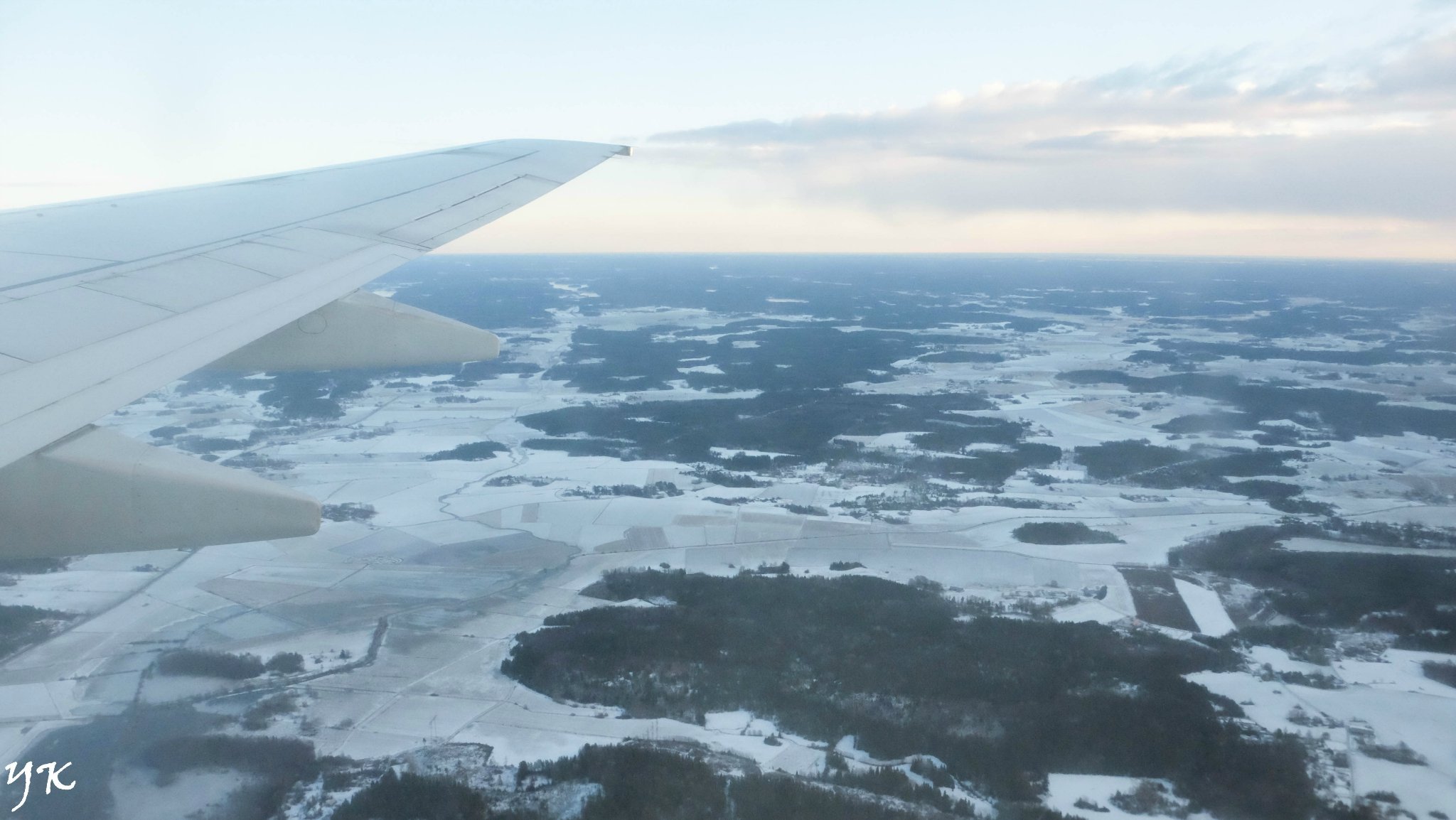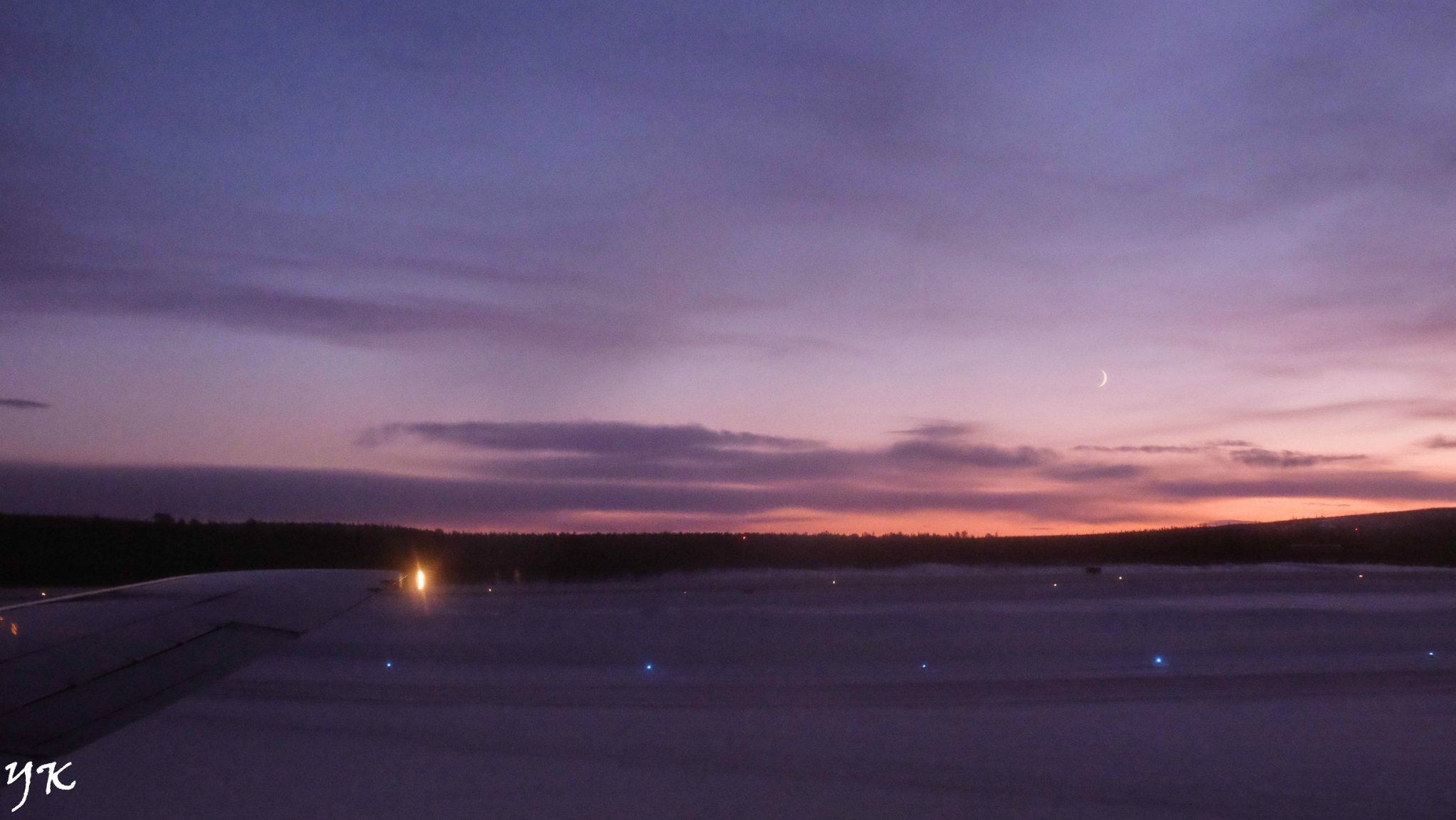 不过后来就一切都很顺利,飞机也是准时起飞~从起飞的那一刻起,我就像坐在车上的狗一样一直盯着窗外一眼都离不开……虽然是短短一个多小时的航班,但是窗外从一片雪白,到飞上云层看到蔚蓝的天空,到机翼被晚霞染红,再到天色渐渐变暗,我们就在天空中度过了北极圈冬天极为短暂的白天时光。