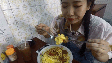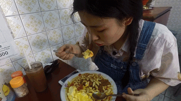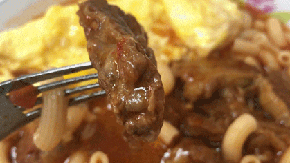 他们家的招牌是烂蛋牛腩米线,但酥饼点的是烂蛋牛腩通粉,虽然安慰自己米线在家里吃的多了,但眼珠子都快掉到对面小哥哥的碗里了。