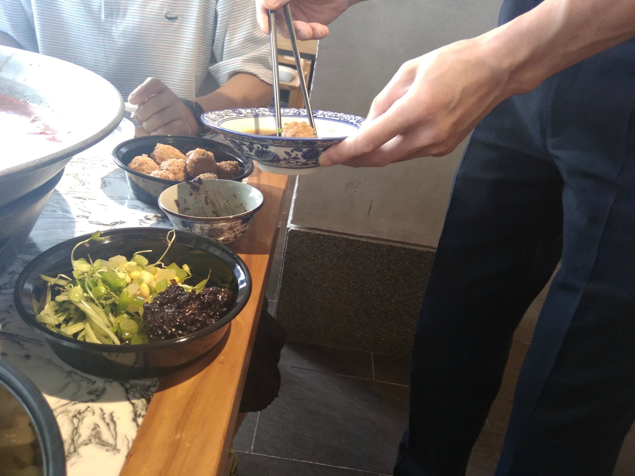 老汤丸子,肉丸子鲜香可口,外焦里嫩,配上青花瓷的碟子,菜品不错,味道也很棒。