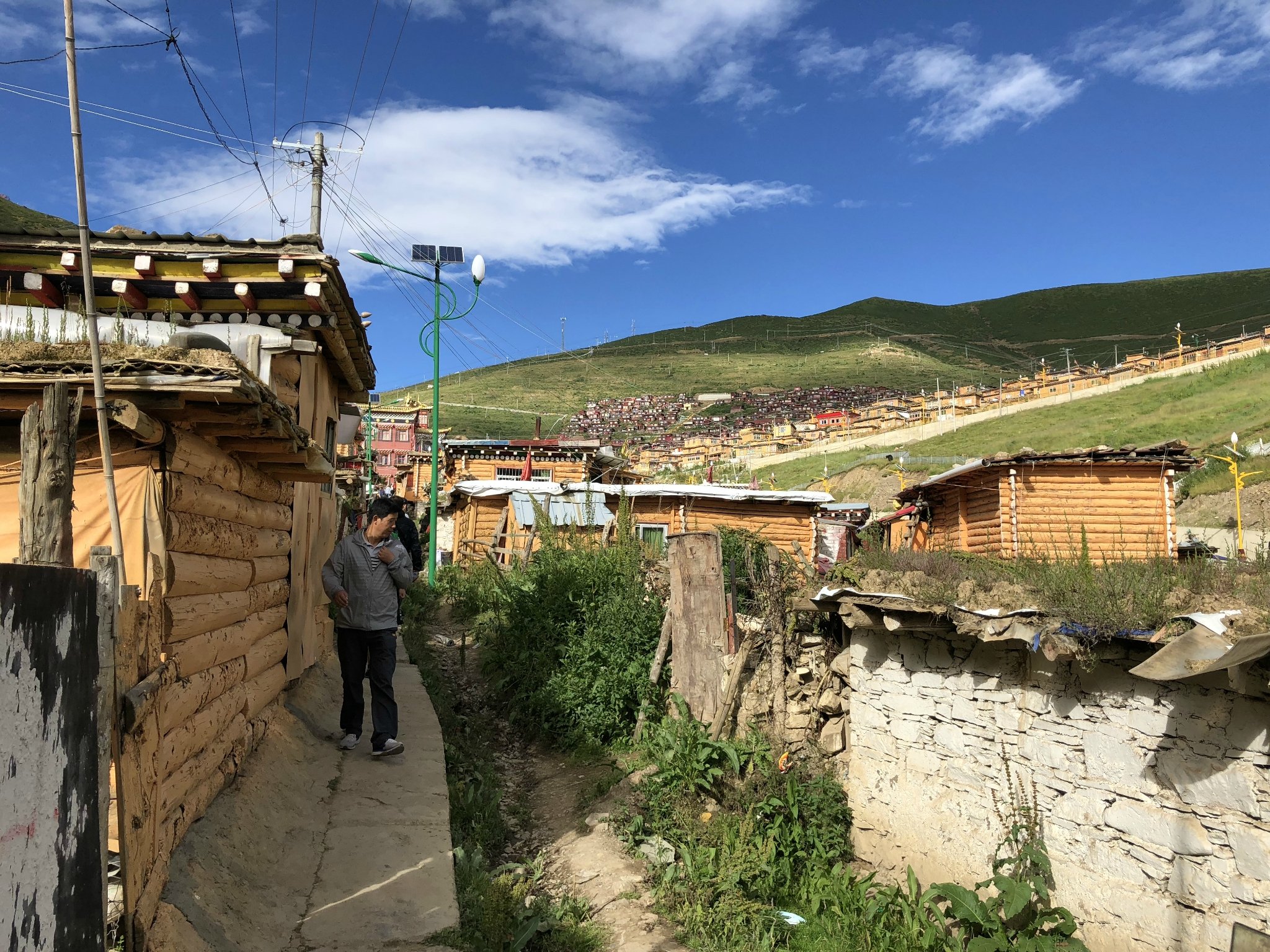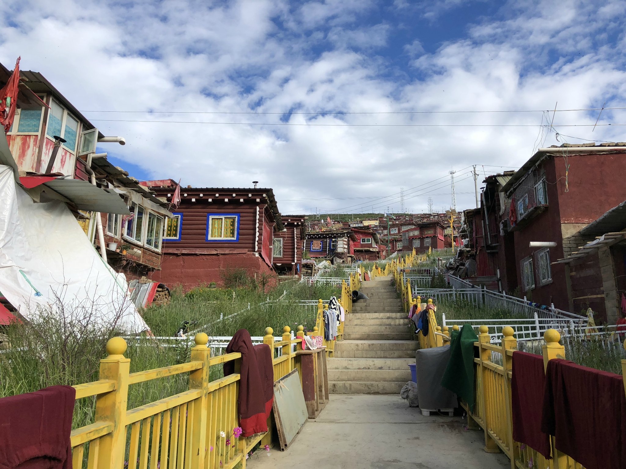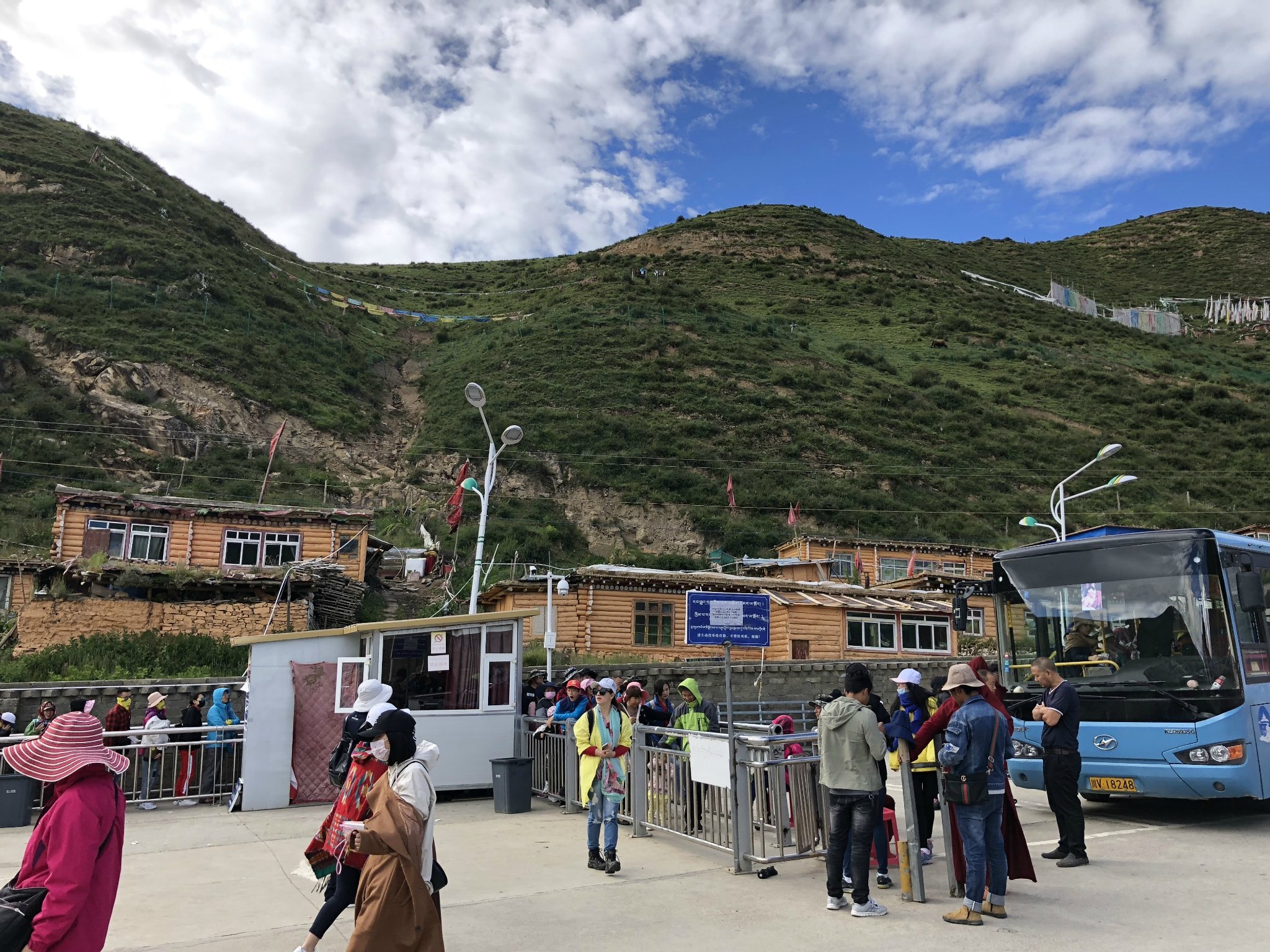 参观色达红房子,是不需要购买门票的,仅需自费4元乘坐景交车便可抵达观景台上的坛城,从这里可以俯瞰整个红房子的全景,亦可以选择顺着黄色的栈道步行而下,近距离观赏每一栋建筑的精妙与神奇。然而,7-8月份的色达,往往是旺季,不知是景区的景交车数量太少还是运行效率低,往往需要排队1-2小时才能坐上车。其实从景区停车场走到红房子的栈道入口,也就是3KM左右的距离,因此为了节约时间,建议体力还不错的朋友,可以步行上下景区,还能顺道欣赏沿途的美景,何乐而不为?