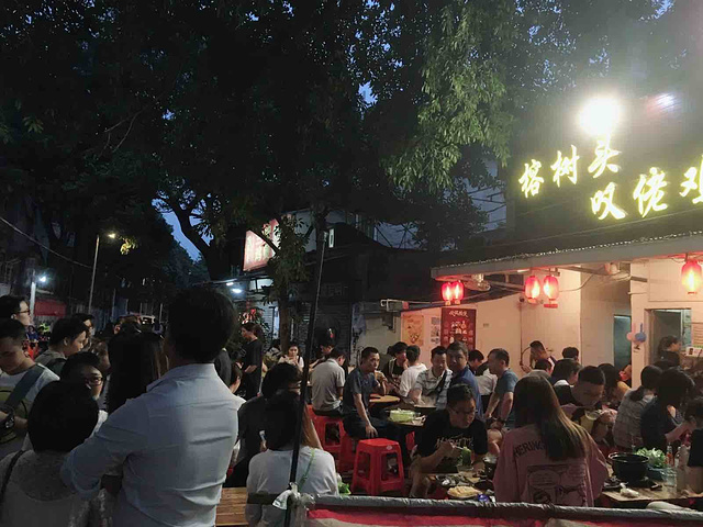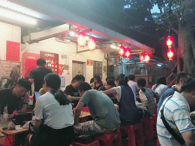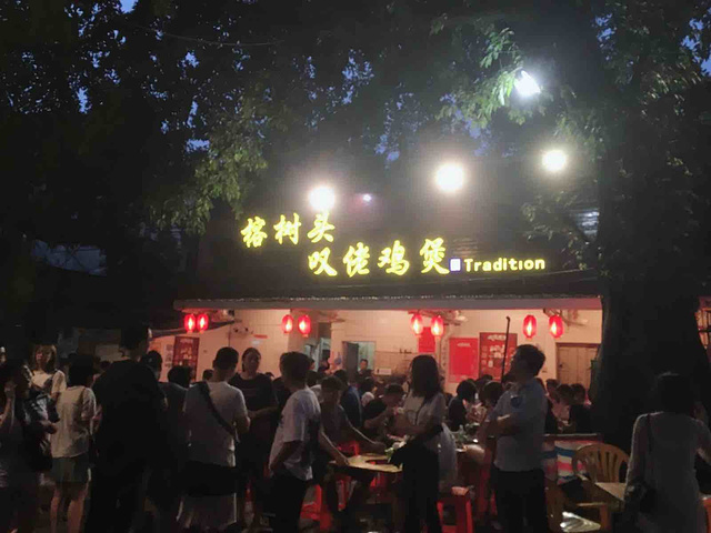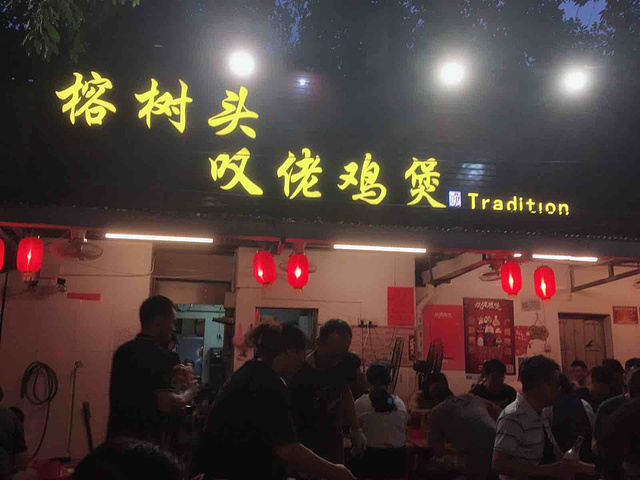 第一次吃到这么接地气的网红店。 第一次我们在广州约起,超难得一次相聚! 一直听好朋友说她那边的鸡煲有多好吃好吃,可是,每次觉得芳村好远啊,距离市中心一个小时,我们多会犹豫半天,这次,完全是说走就走,说吃就过去吃。 一来到榕树头叹佬鸡煲,好亲切的感觉!有点回到老家摆流水席感觉,大家一块坐在榕树下,津津有味的吃鸡煲!虽然没有华丽的店铺装修,没有空调的门店,唯独一棵见证鸡煲历程的榕树。大家都是坐在露天的榕树下,感受着最天然的风,吃着最美味的鸡煲! 小确幸,我们5点钟就到那边,刚好遇到他们高峰期启动时,添加了好多桌椅,我们不用排队就可以吃,超开心!当我们吃到6点多时,人越来越多,排队都排到大马路边,就连加位也在马路边了。这人气爆棚,超多人都是慕名前来!真心觉得不错,鸡煲味道也很赞!重点是性价比也高,我们三个人点了田螺鸡煲,加了很多配菜还有饮料,才一百多块,吃得饱饱! 【美食推荐】 美味鸡煲,可选择鲍鱼鸡煲、田螺鸡煲、还有生蚝…… 交通:1号线芳村地铁站B1出口右手边对着的小巷进去,然后往左边走几分钟就可以看到新店,但是建议不要去新店,它没有老店的那么地道,你需要多走几步在前面的小巷就可以看到,就在榕树下!