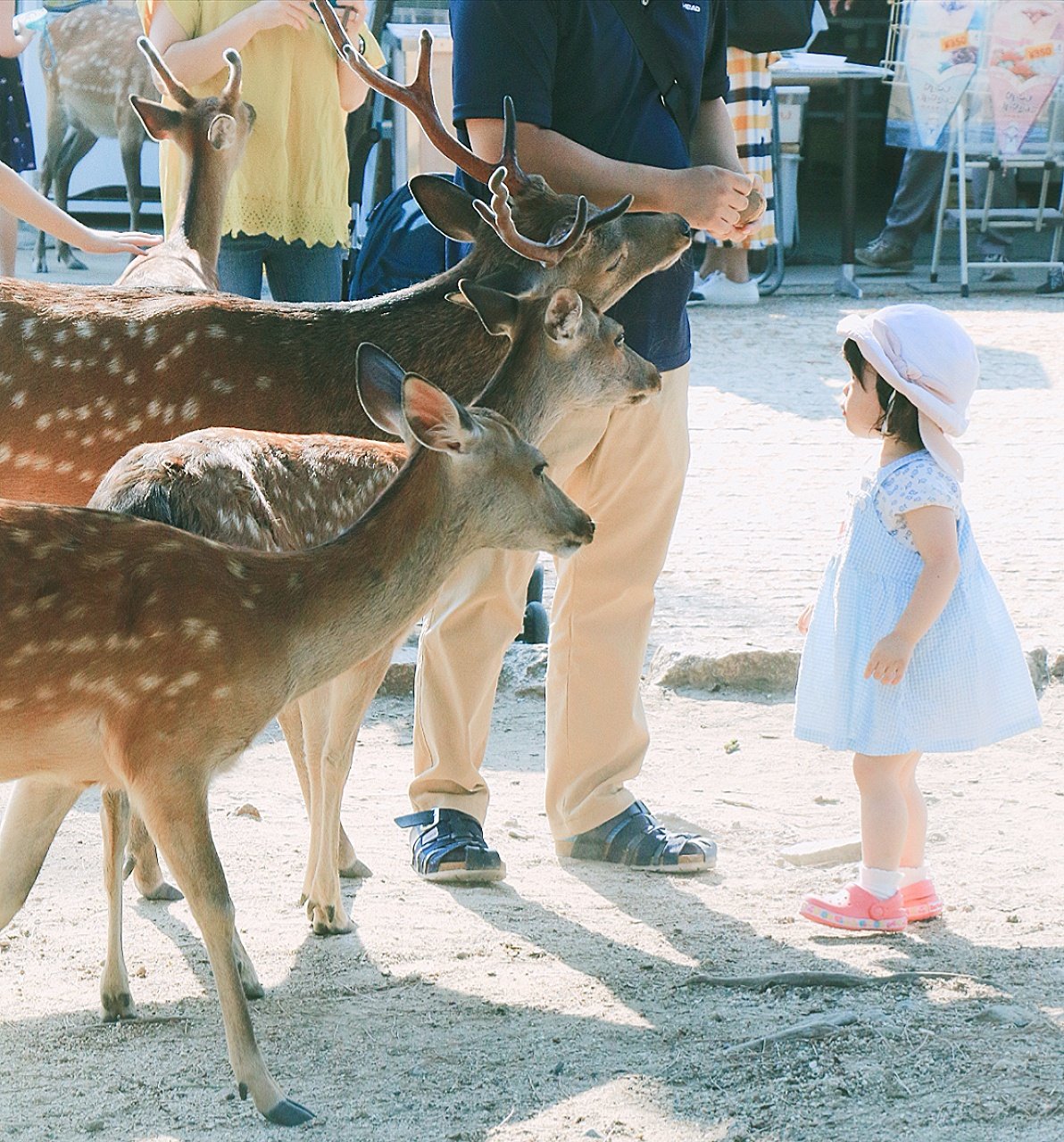 整座奈良都是鹿的城市。鹿鹿都很可爱,但也不要因为他们可爱的外表而放松警惕,如果你手里有鹿饼,且你又恰好呆呆地站着,那么你肯定会被鹿鹿们一张一合的讨食的嘴团团围住。