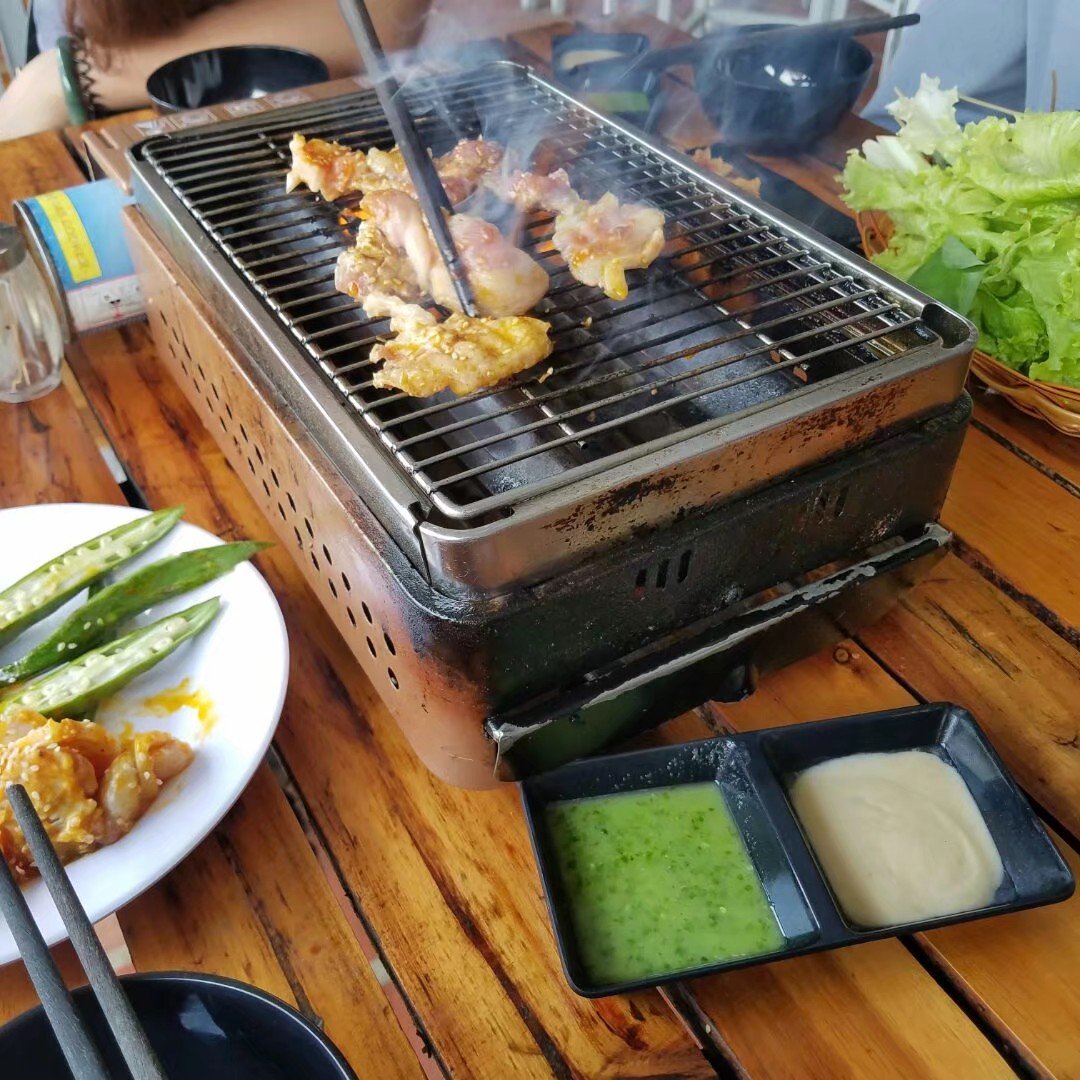 本来是想去网上推荐的另一家BBQ,不料去时他们家正在休假,于是绕到背后的NO.1 BBQ吃烤肉,这家店离疯狂屋很近。NO.1 BBQ可以用狂野两个字形容,非常朴实的烤架,时不时会窜起的火苗舔舐着烤架上的五花和秋葵,危险指数五颗星。配有的酱料一种是绿绿的某种蔬菜味的酱,另一种是普通的烤肉酱,都可以尝试一下。这家店的菜品味道很好,但是环境不算很好,店员的英语水平不太好,点菜有一点点的困难。