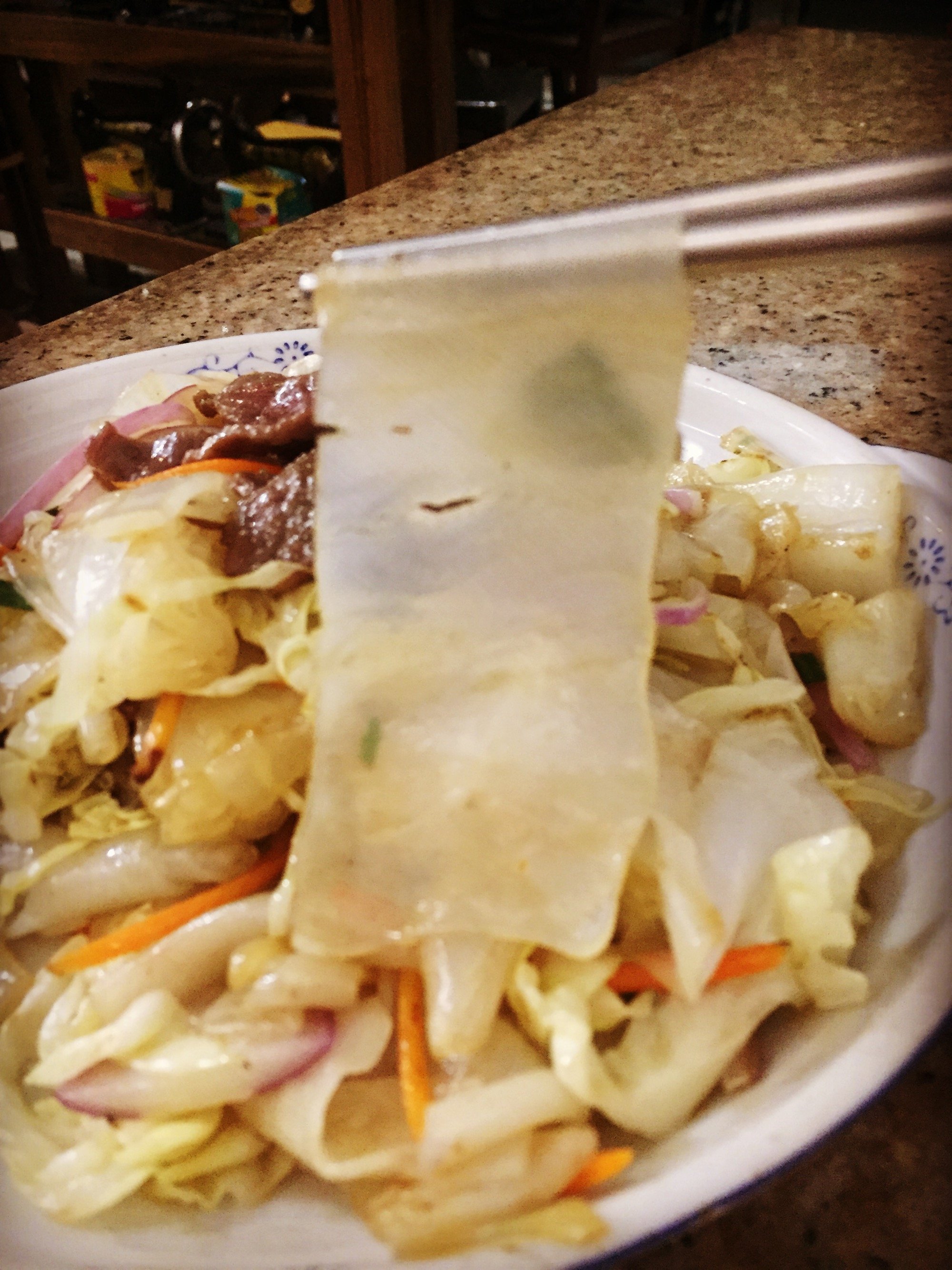 粉是晶莹剔透的陈村粉,配料有胡萝卜丝,洋葱丝和包菜丝。炒的方法并不特别。味道中上。