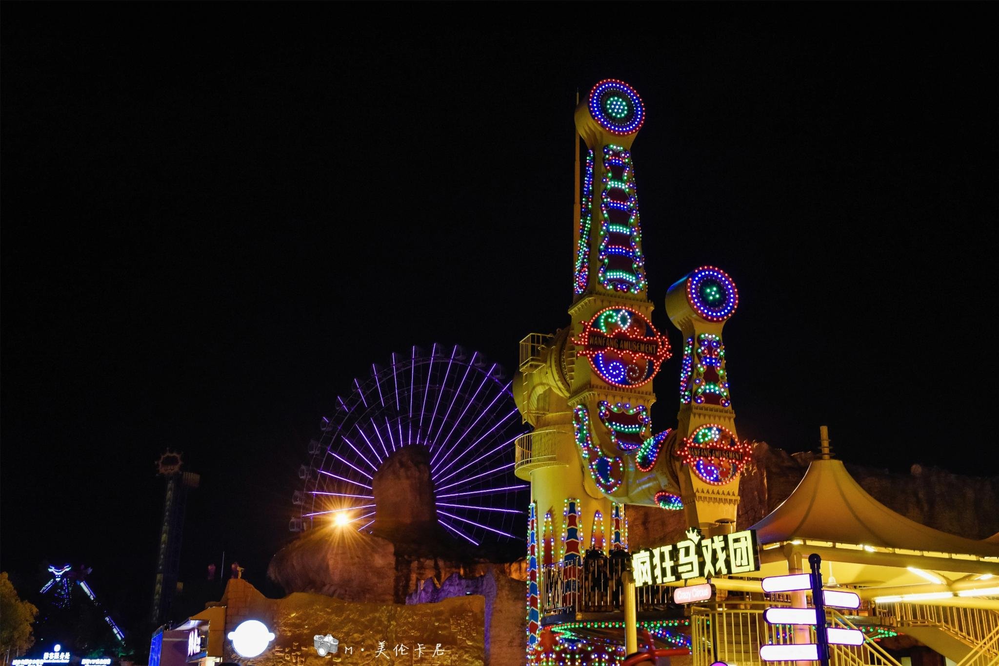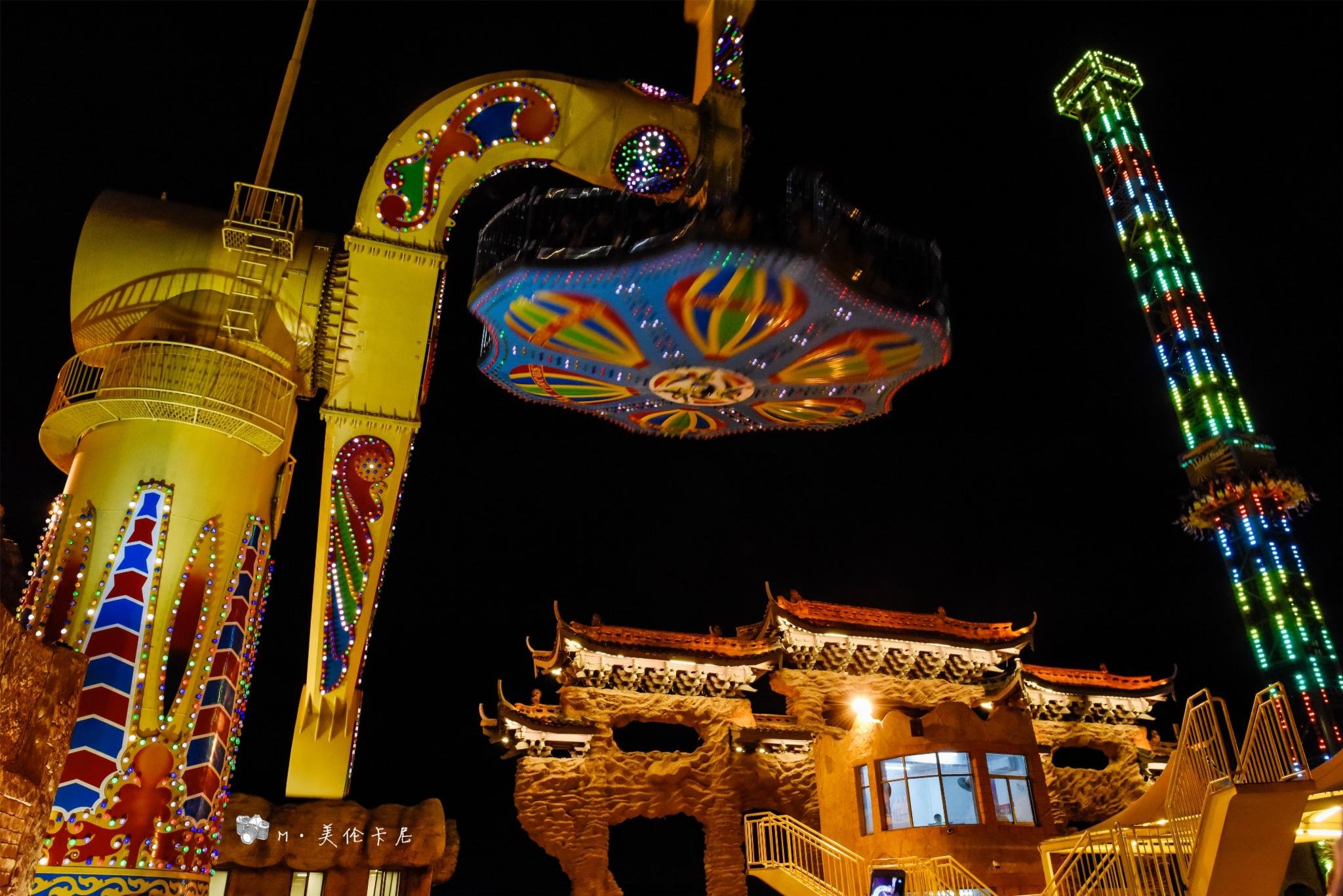 越是夜色深沉,乐园里越是热闹,有着欢声笑语,有着尖叫连连,还有着演出中气势恢宏的配乐,坐上摩天轮,将这愈夜愈美丽的横店尽收眼底,为这欢乐的一天画上圆满的句点。