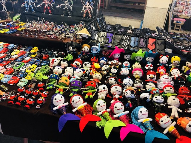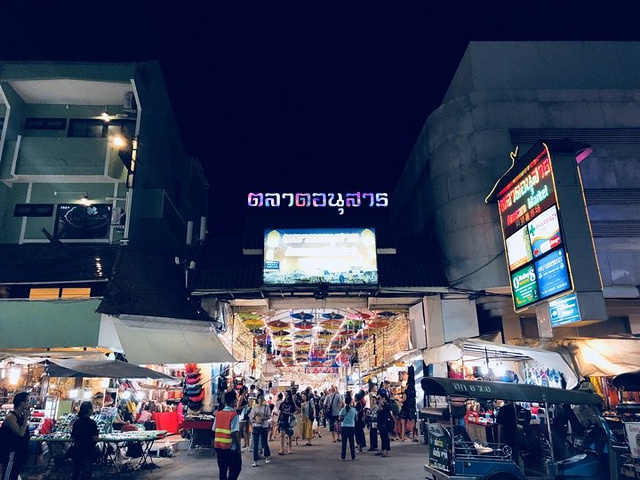 阿努沙夜市,应该是在长康路夜市附近的,我们也是从瓦洛洛市场附近步行过来的,先在woo吃了晚饭,然后想要饭后消食,就这样步行过来了,没想到还不远,走着走着就到了。 清迈有很多夜市,最大的应该是周末夜市了,不过是在清迈古城那一片,一个夜晚也逛不完,然而我们也完美的错过了,长康路夜市虽然路过,但是我们也没有看到。 最后抬头一看,这里是阿努沙夜市的入口,那好吧,既然来了,还被我看到了,我们总归是有缘分的,那就进去看看吧, 泰国真的是夜市文化国度,哪里都是夜市,每一个城市夜市也有很多,有定期的也有长期的,这个阿努沙就是每天都有的那种,顶上是一个盖子,恩,类似棚一样的,小吃都不是很贵,反正拿了就吃的那种,还有其他小饰品之类的,小东西也很多。 夜市门口全部都是双条车,来了这里一定要感受一下双条车哦,真的很不错,好拉风的。