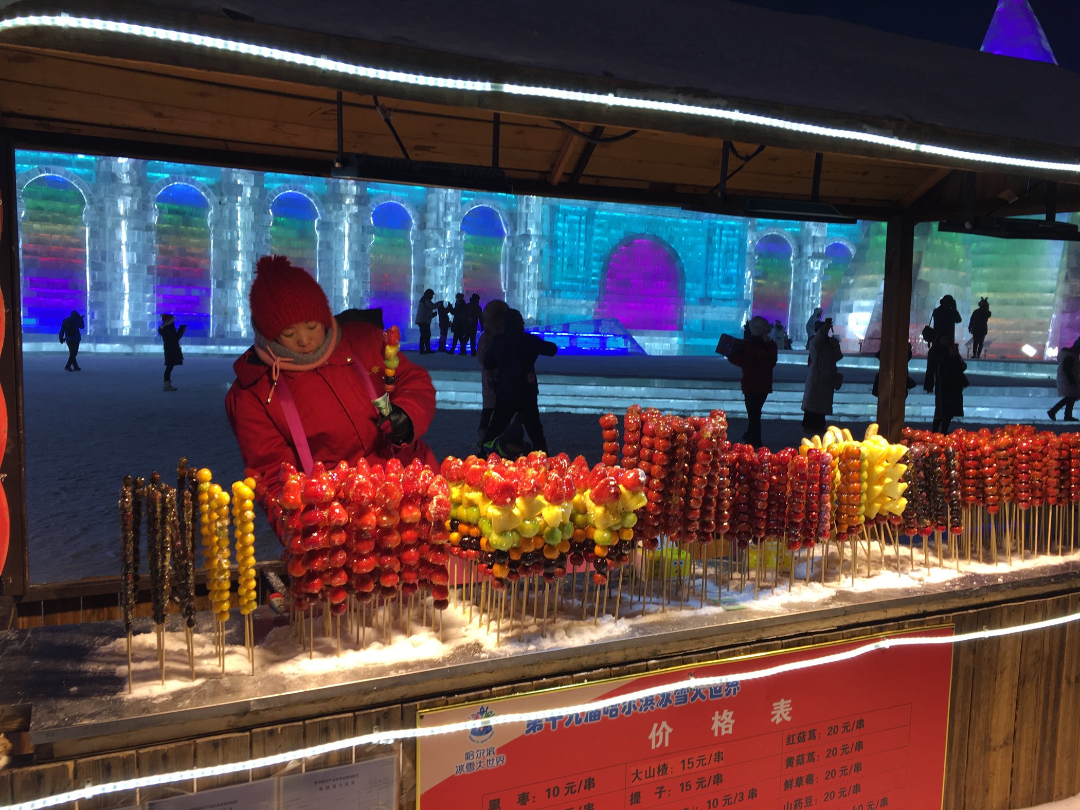里面的冰雕是让南方人很震撼就对了。夜景,让此时的大世界多了几分浪漫的色彩。真的很冻