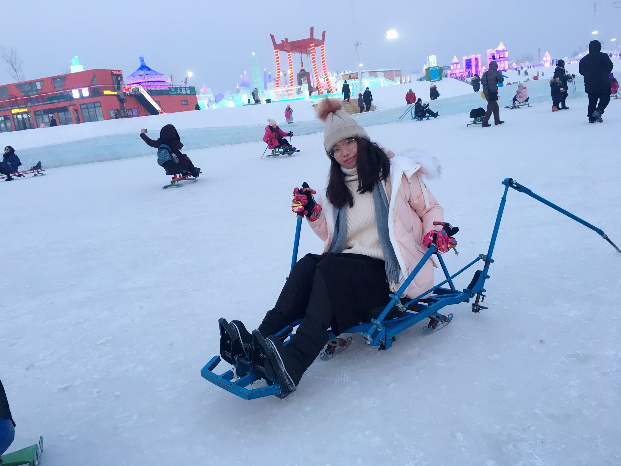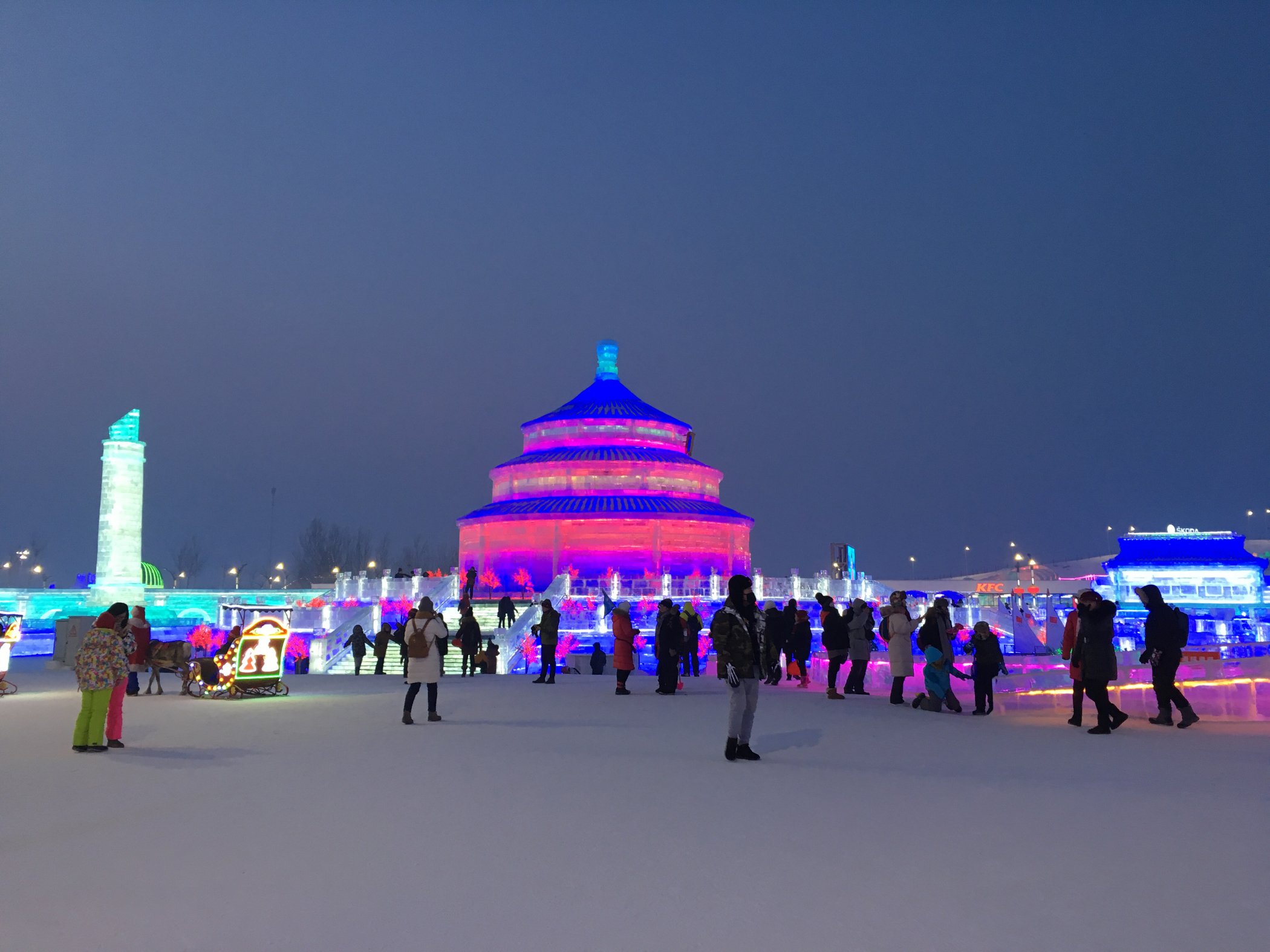 冰雪大世界算这次行程中门票花销比较高的景点了,一张两百多的门票在国内屈指可数。温度自然比市区内要低一点,去之前做了很多功课,在那里呆了一整天,算是把两百多花的淋漓尽致了。