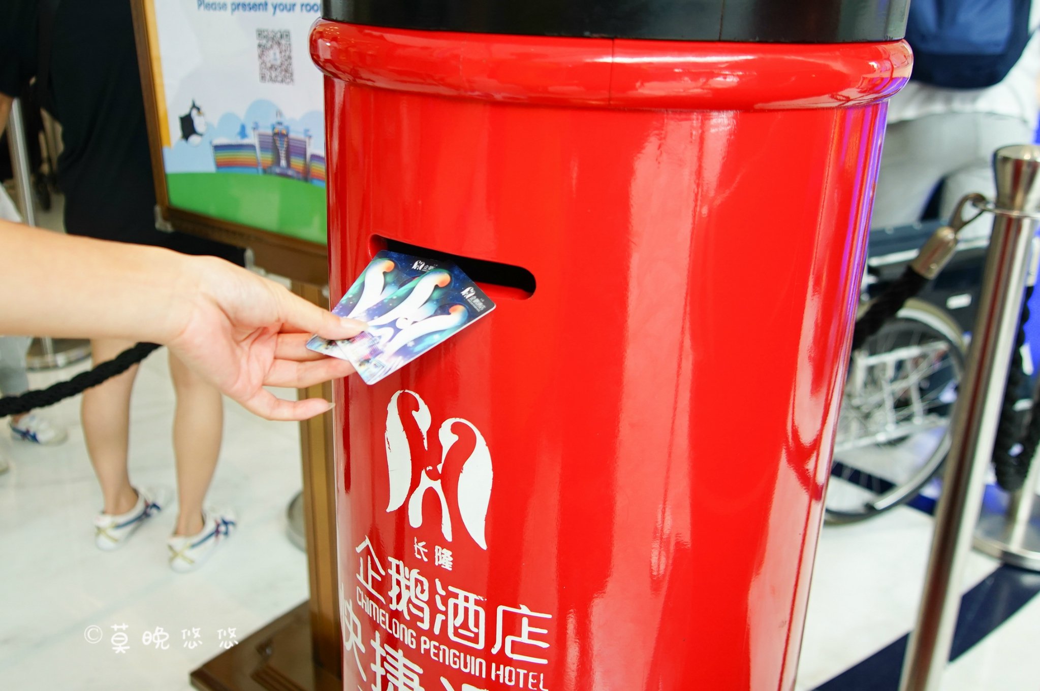企鹅酒店跟熊猫酒店一样,也有快速退房通道,直接把房卡放进桶里就可以了~