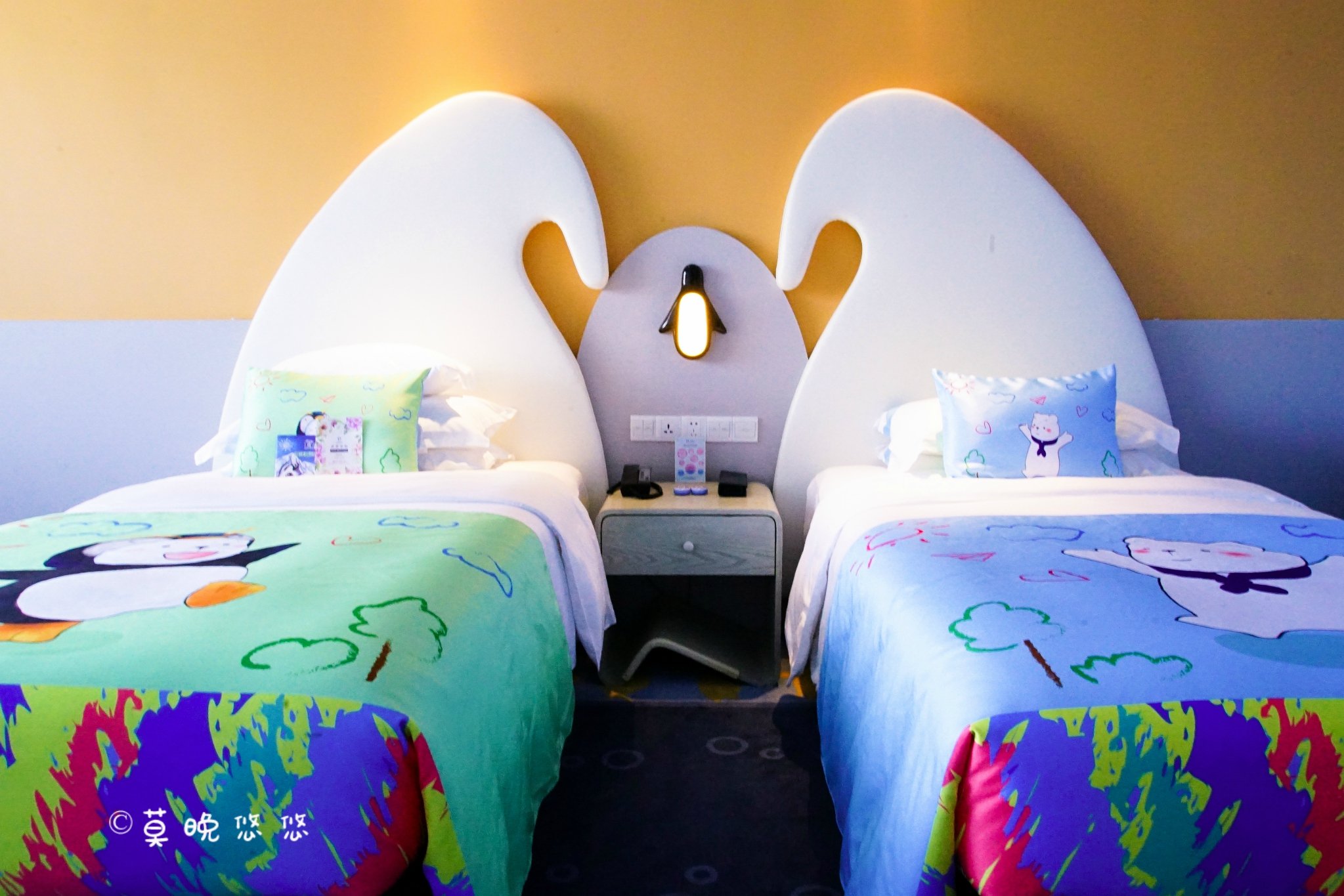 客房分为QQfamily智能主题客房,极地房,温带房,探险房,企鹅家庭房五大主题。我们入住的是极地房。
