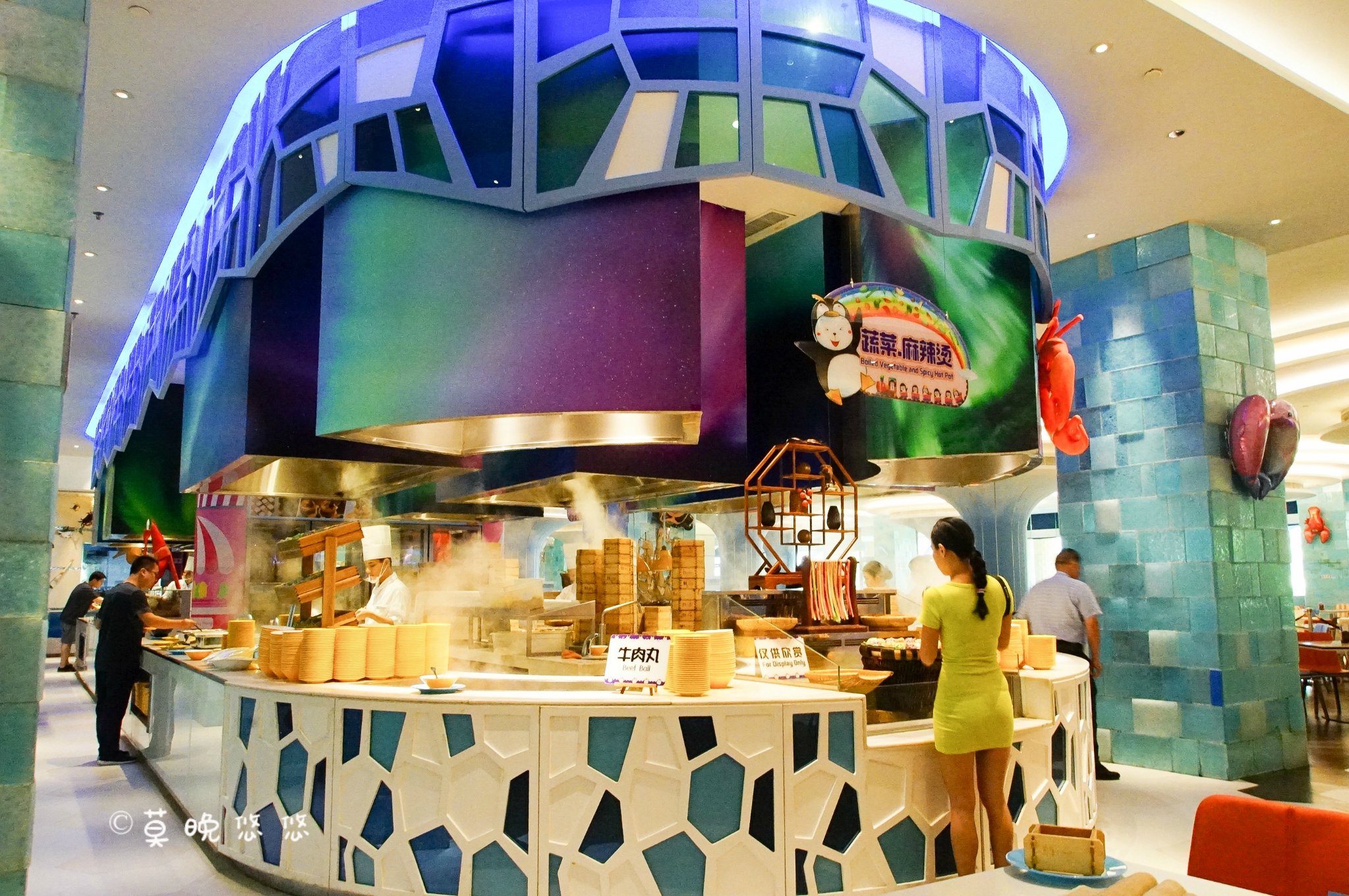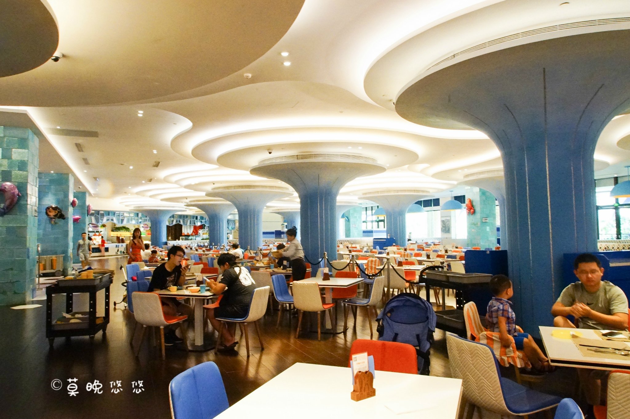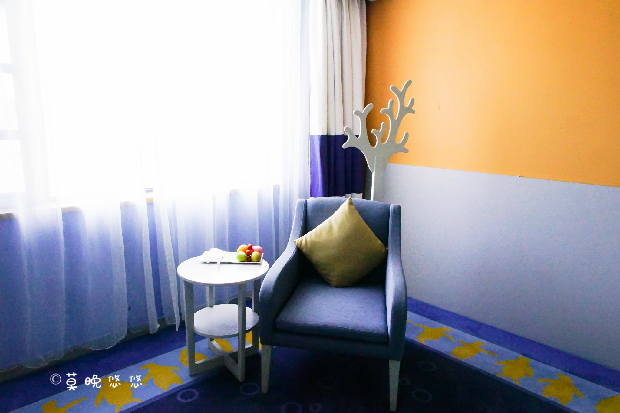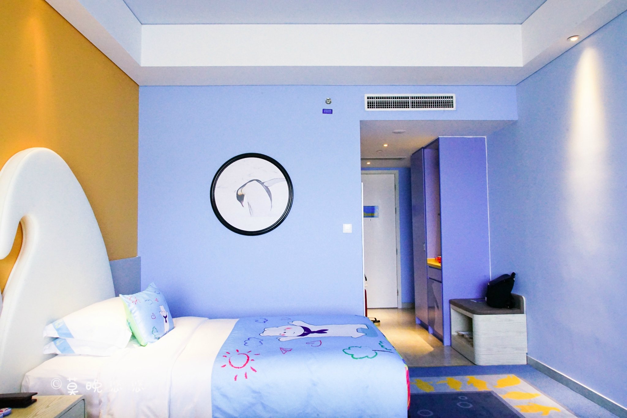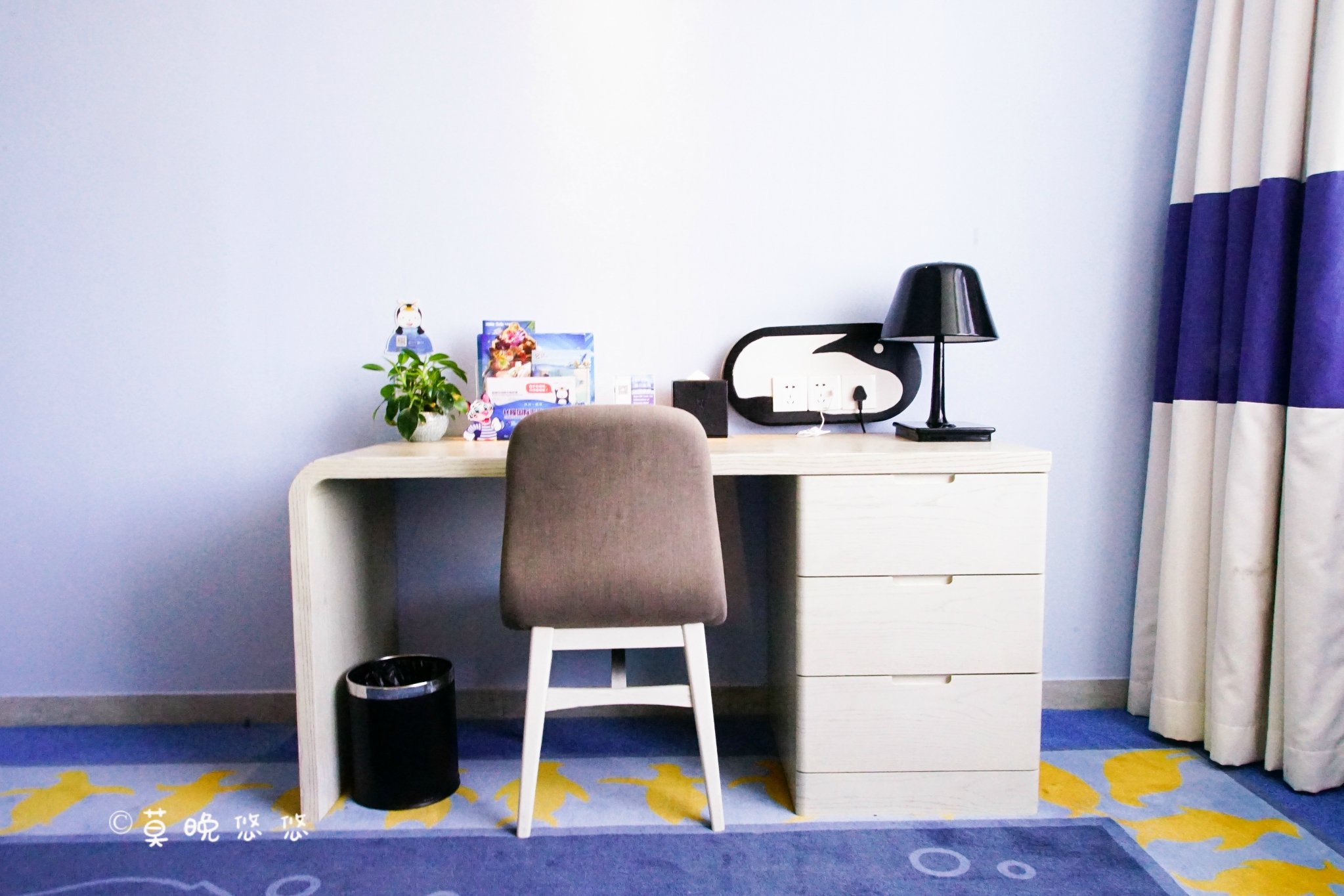 企鹅酒店则是以蓝色为主色调,很契合海洋的元素。蓝色看起来非常干净清爽,一进到酒店就心情大好。