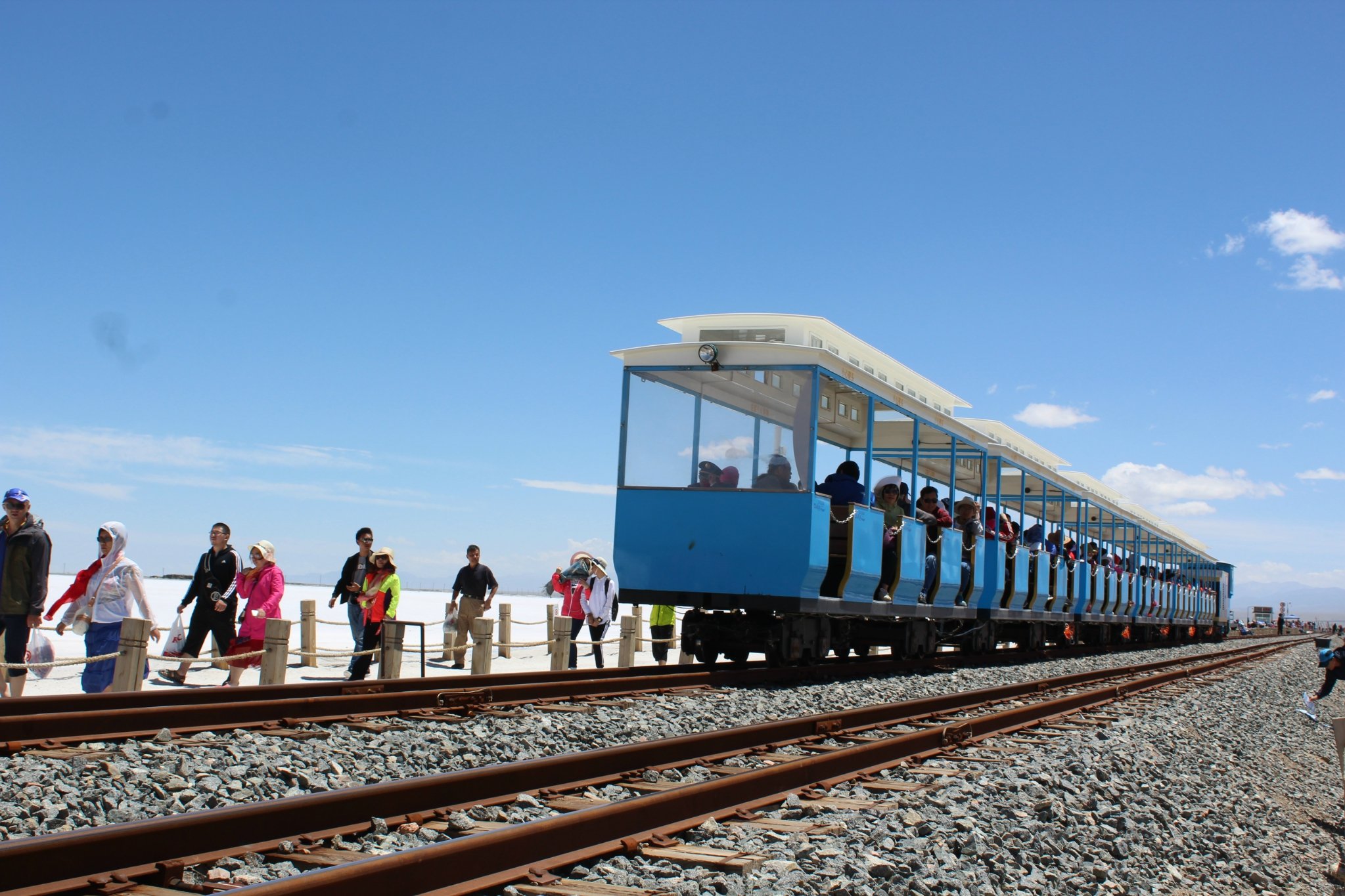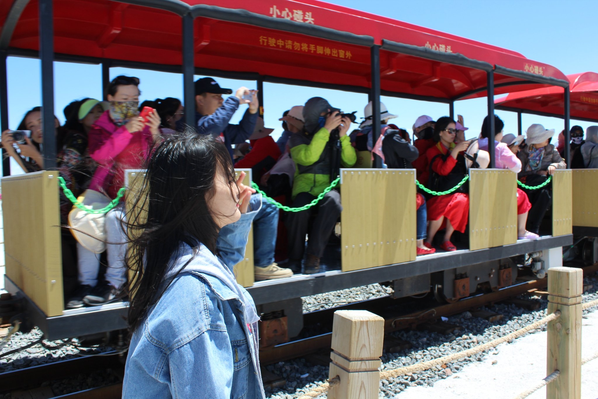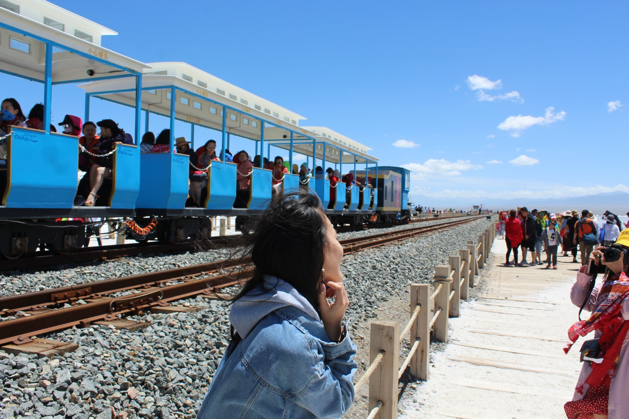 早上八点多到十一点多的火车,从西宁到茶卡,本来早上出门的时候都还是下雨的,但是到半路天空慢慢变晴了,太阳也出来了,我们是太幸运了吗,是的。不过到了湖边气温更低了,虽然天上挂着大太阳,但还刮着风,超级冷。