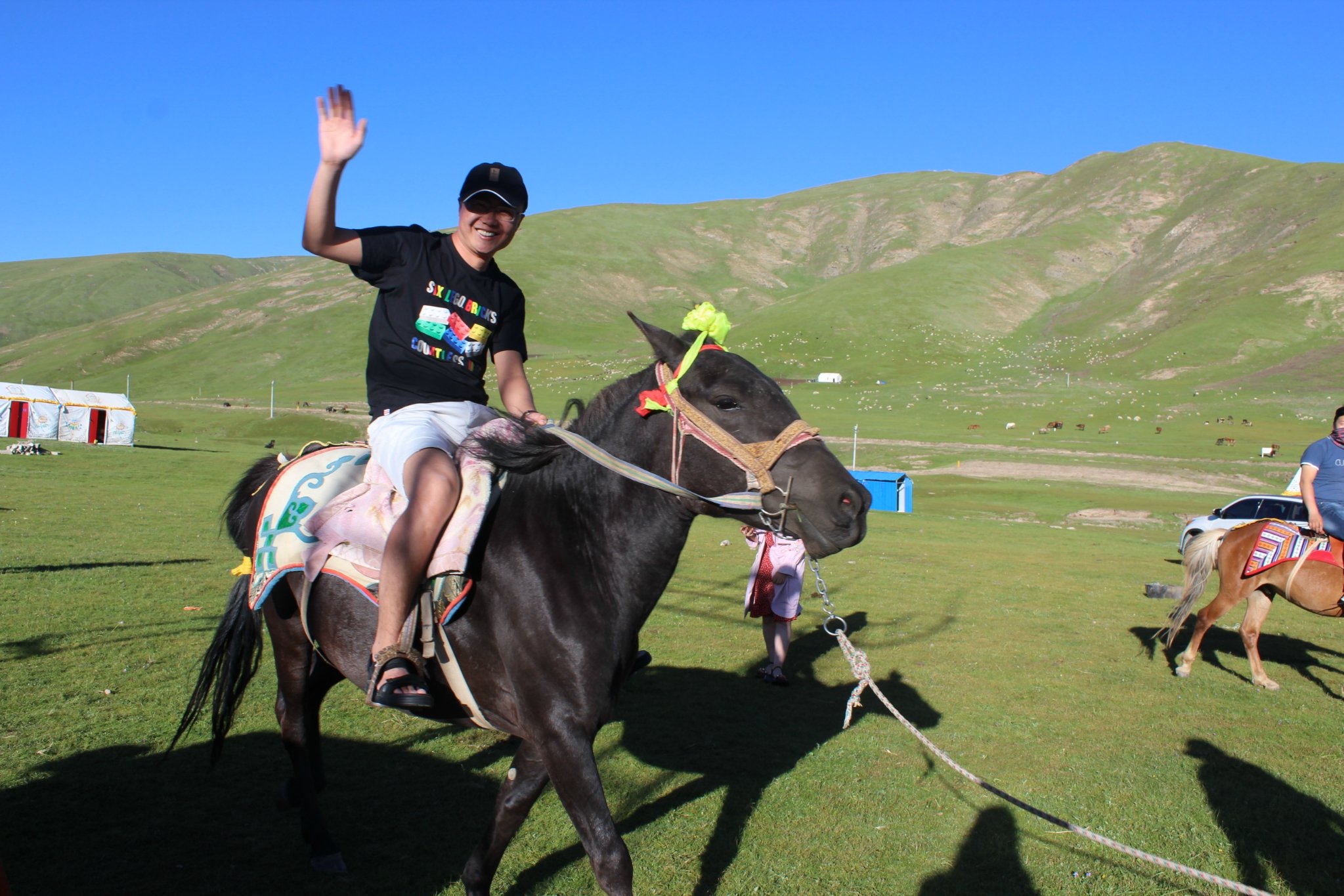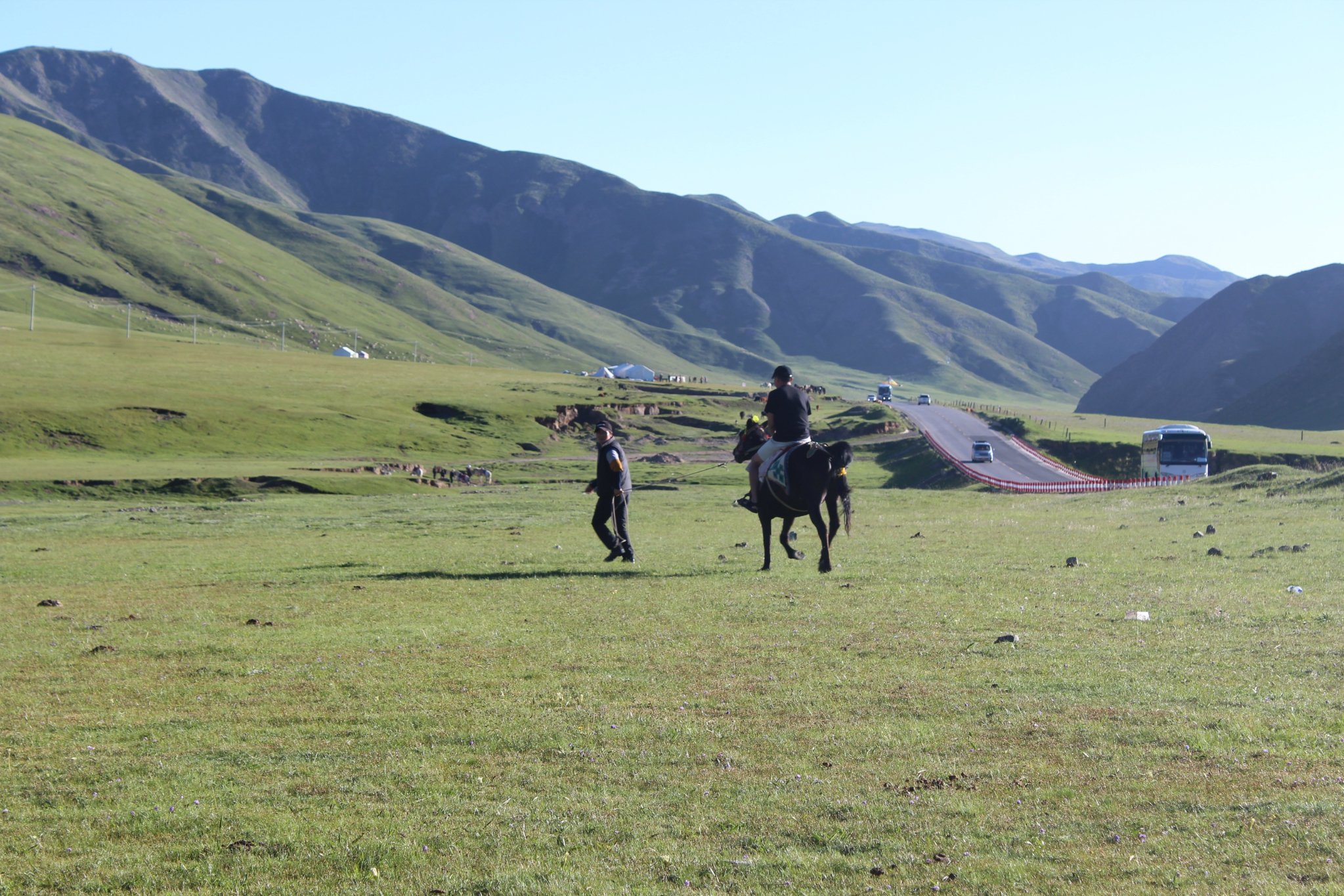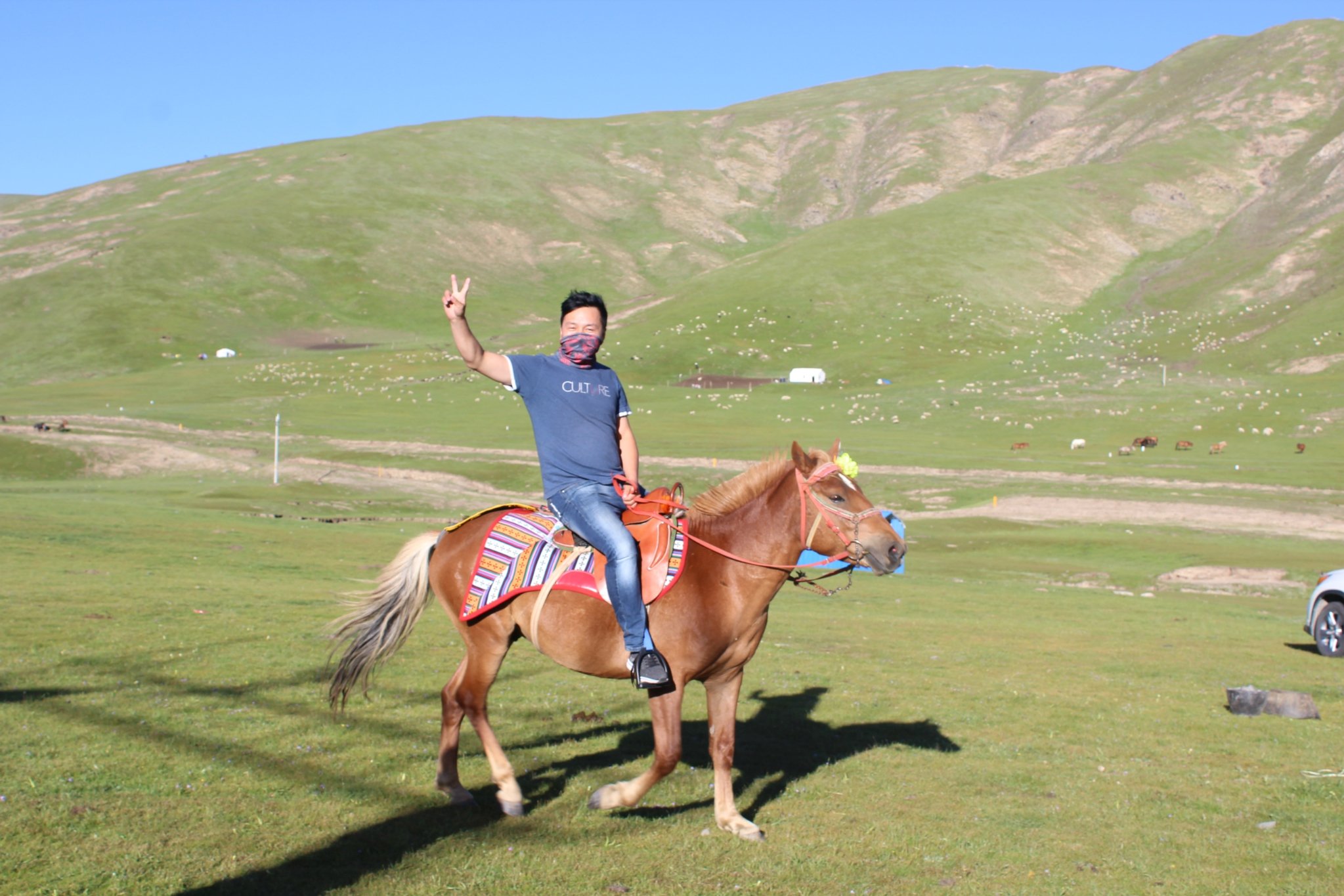 到半路的时候他们停车,下来骑马,一人20,我们两个女生不敢骑,只能在旁边看,哈