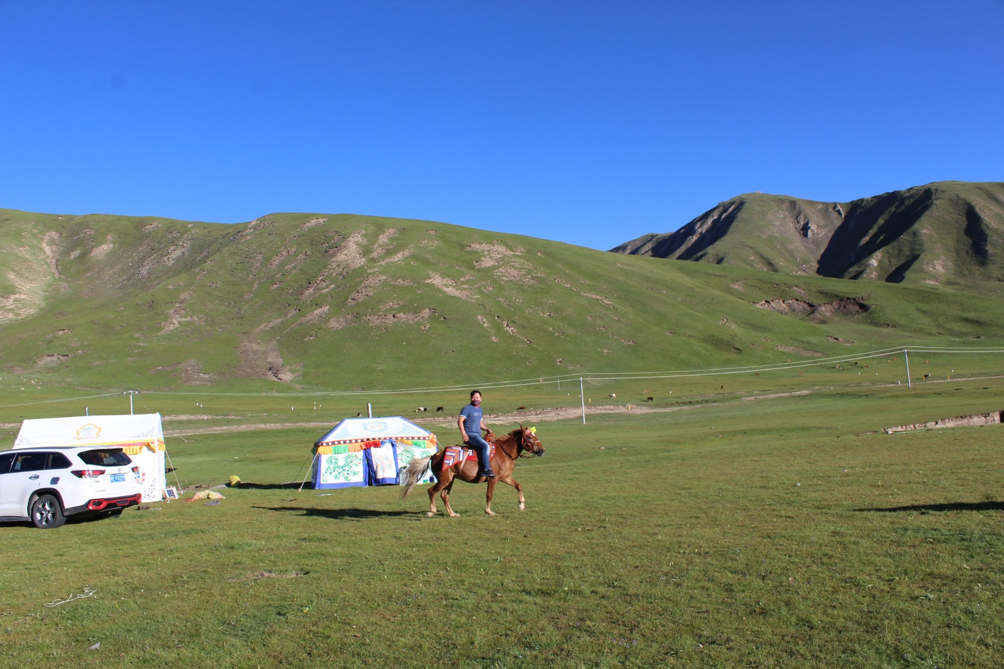 这些马都是这里的游民养的,平时会供给游客骑,赚些钱。