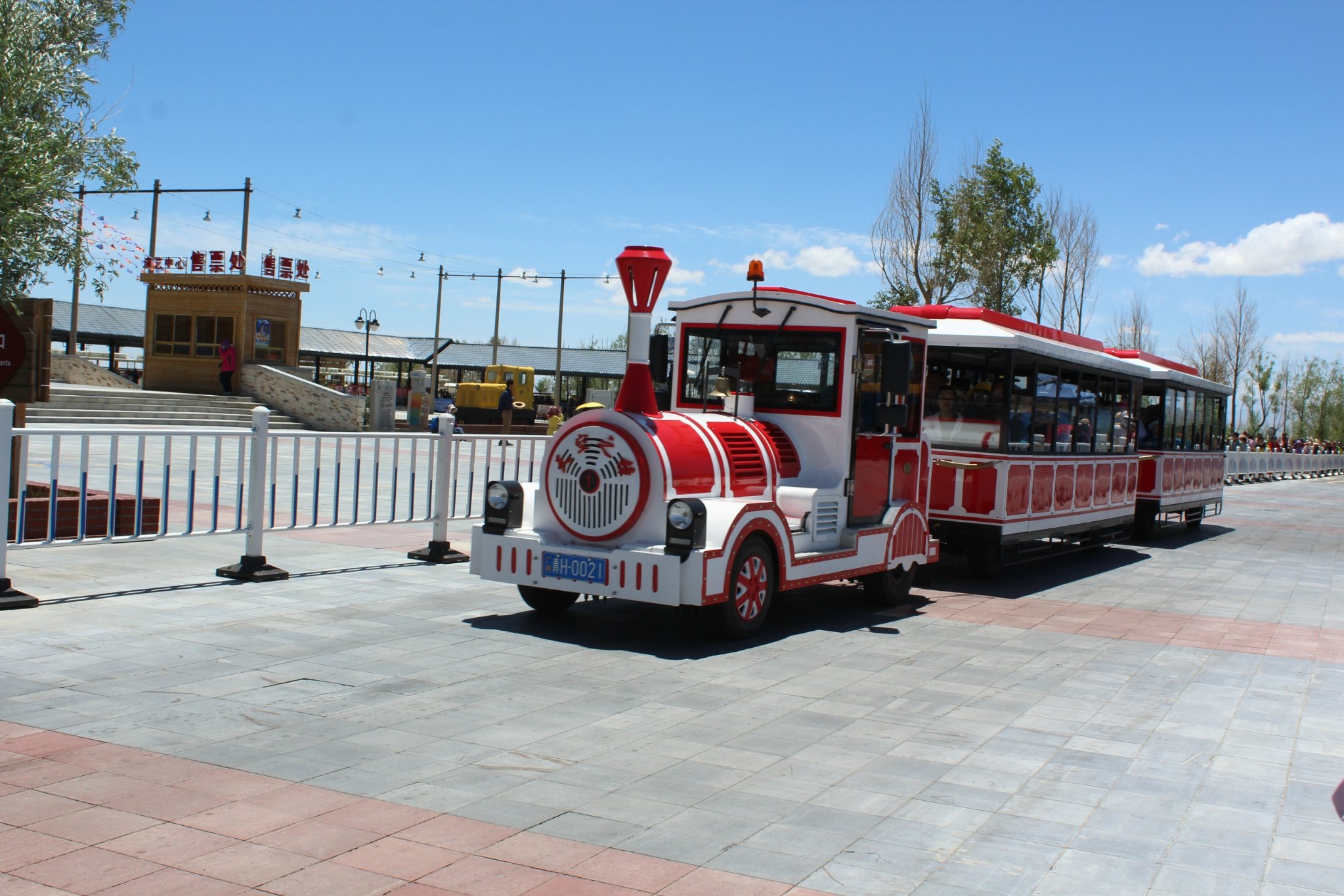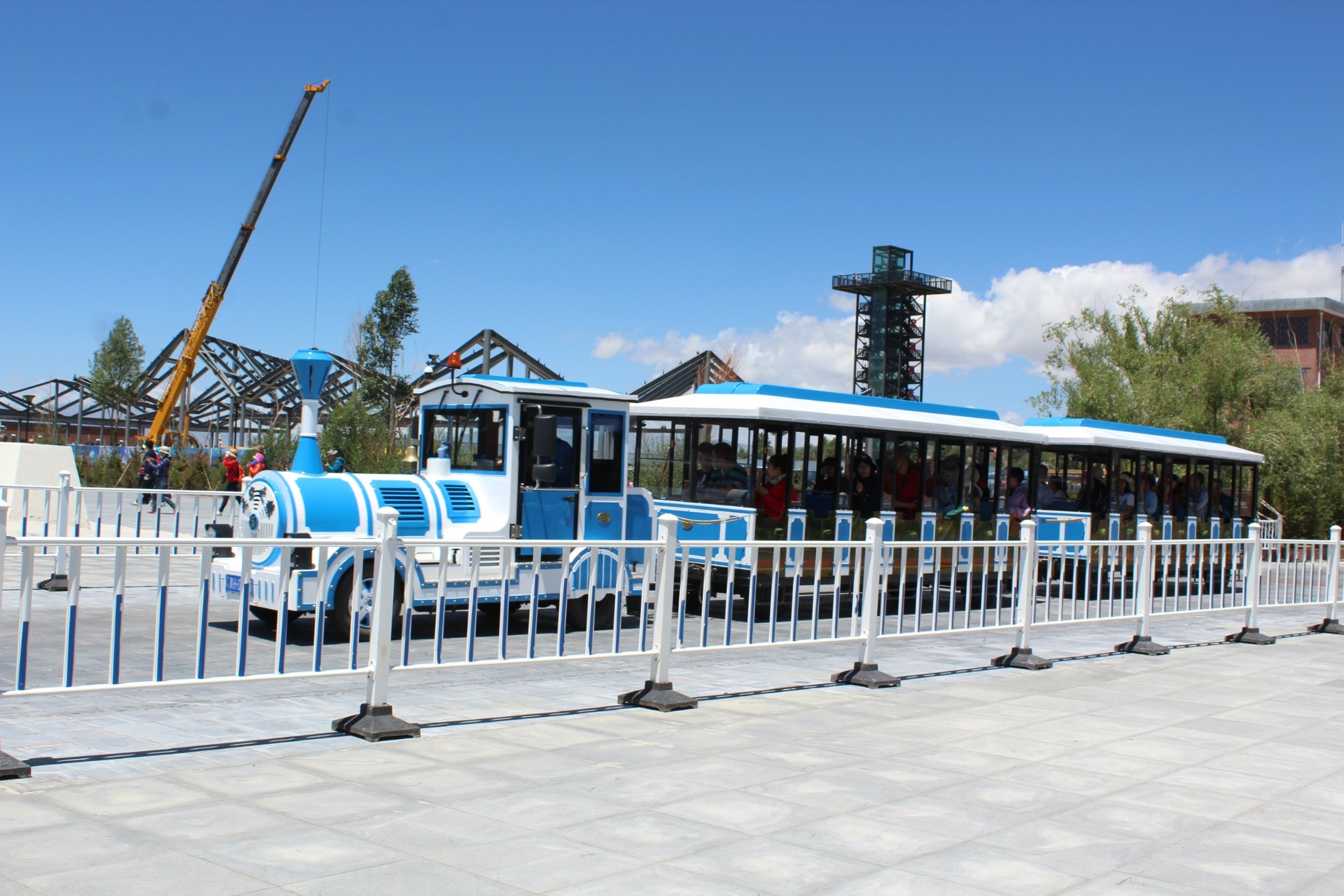 坐小火车游览的人还挺多的。