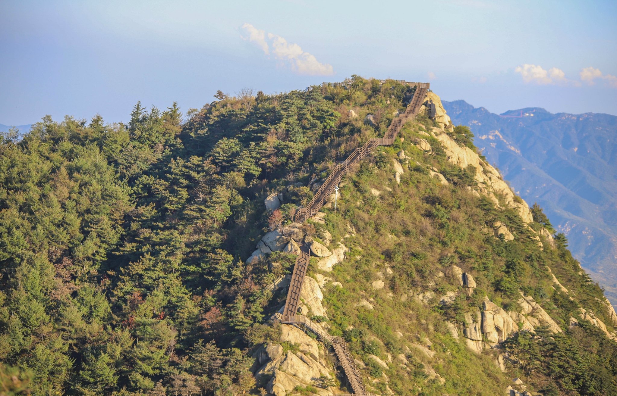 若是论起无限风光,自然是要直达山顶的。这里是整个云蒙峰的最高处,也是视野最好的地方。在明代曾经有诗赞美这里的风景“蒙山高最是双峰,上有烟云几万重。我欲峰头一伫立,却从天外数芙蓉。”由此可见,这无限风景,是如何让古人折腰的。