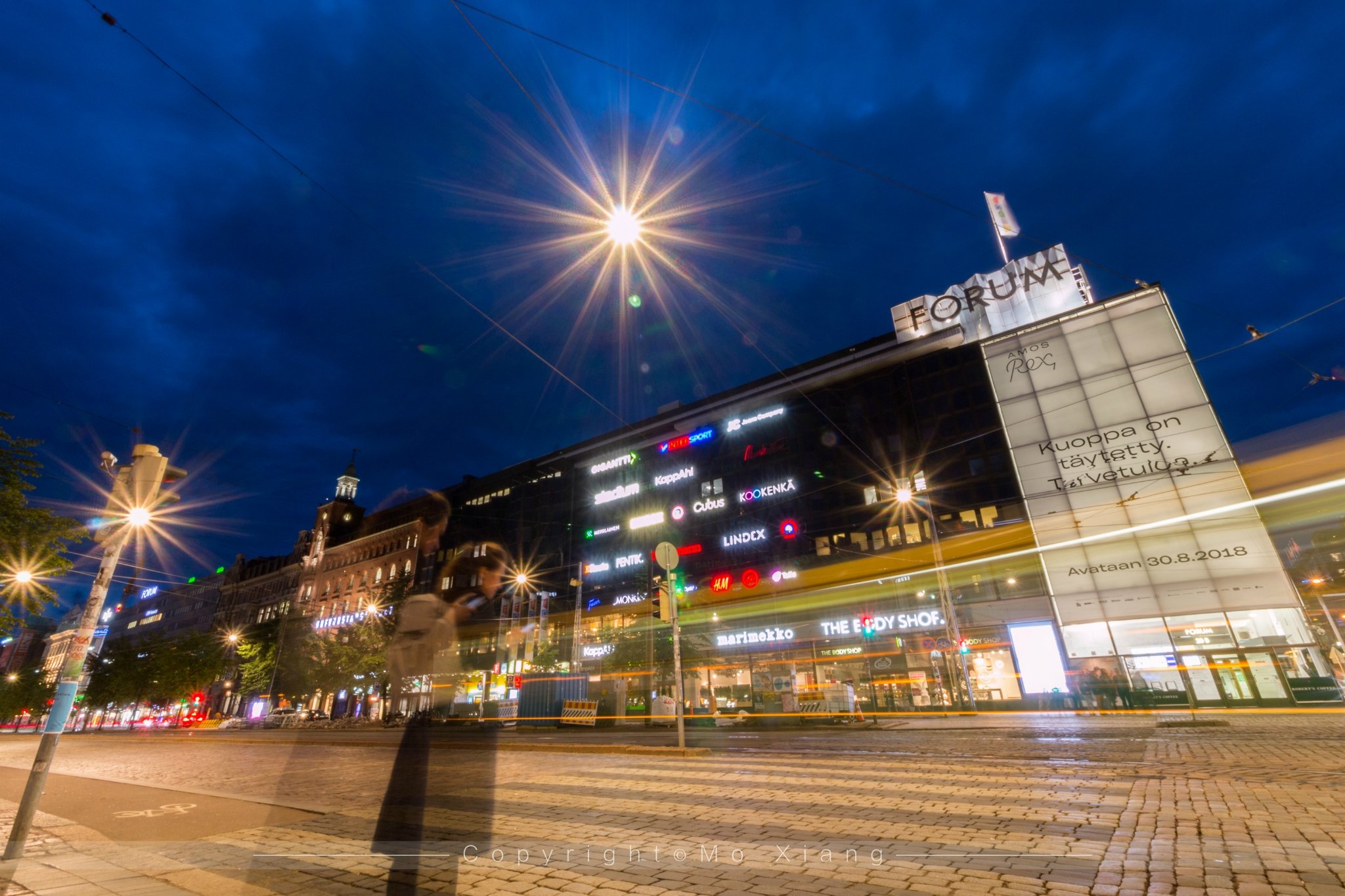 用完餐时外面已经夜幕降临,仿佛让我回到了第一次来到赫尔辛基的时候,那个夜晚刚刚下过雨,吹着微风,电轨车来来往往的穿行着,一样的街景,一样的感觉。