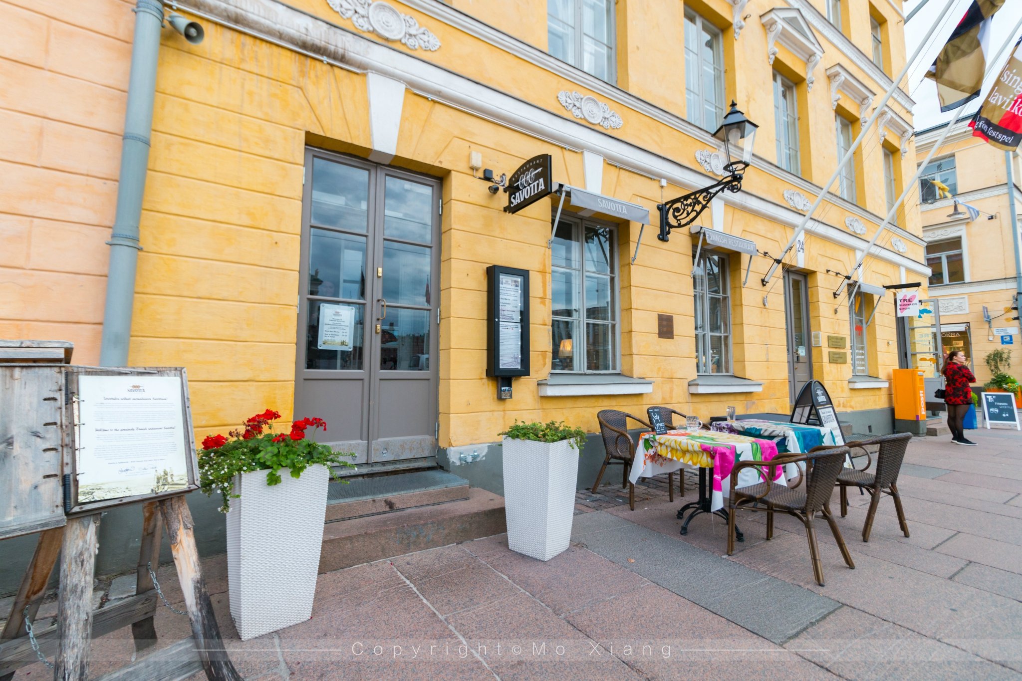 Savotta是一家非常有芬兰情调的餐厅,它位于赫尔辛基大教堂的马路对面的一栋老楼中, 赫尔辛基很多餐厅的门头都不是很瞩目,当你走过这里如果不留意,看真的很难注意到,前一天到达赫尔辛基晚上出去溜达的时候居然都没有看到。