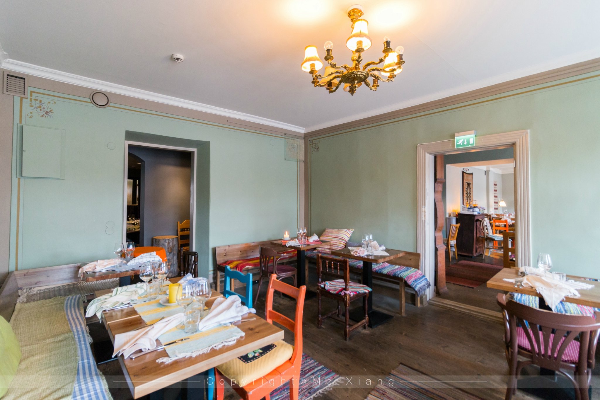 餐厅里的灯具,桌椅,地毯都是纯手动制作,而且也能看的出来至今也有一些年头了。而且在窗台边上摆放了一些复古的胶片及生活饰品,在这里用餐能感受到浓厚的芬兰情调。所以这也是为什么我来到赫尔辛基品尝的第一家餐厅。
