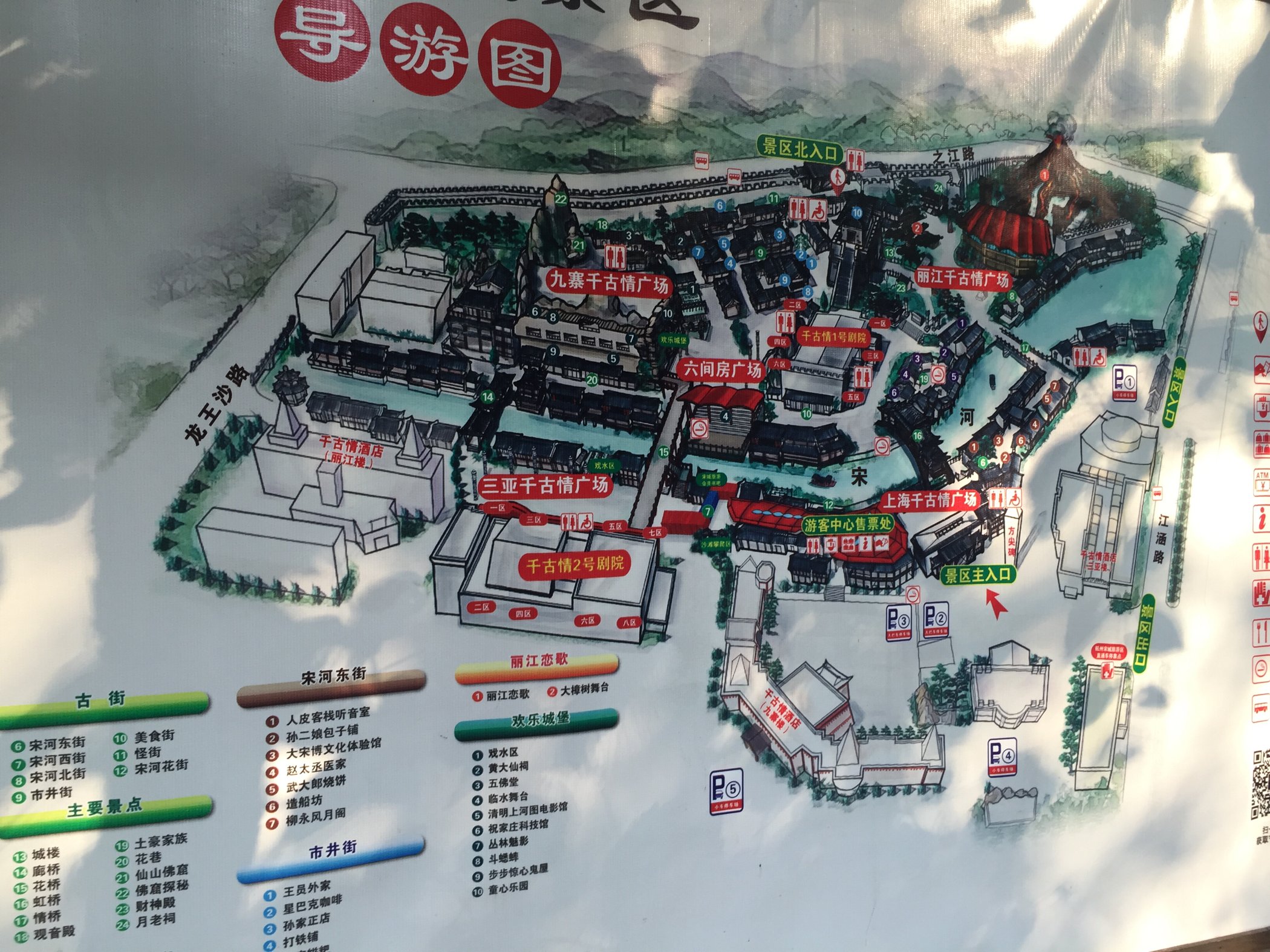观看演出前,可以先在宋城逛逛,里面有月老祠、财神殿、孙二娘包子铺、人皮客栈、衙门、市井街、怪街、王员外家、各大剧场等,不同时段街上的小剧场都有表演。