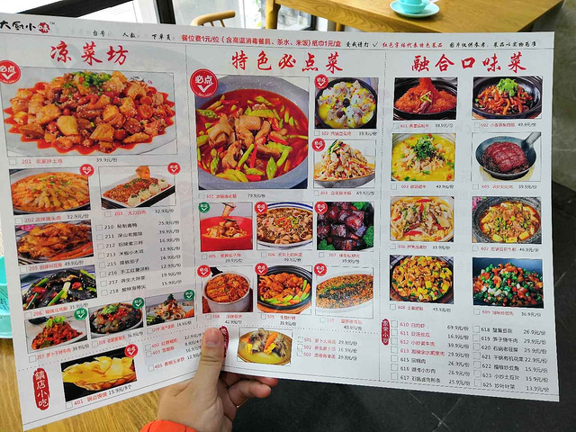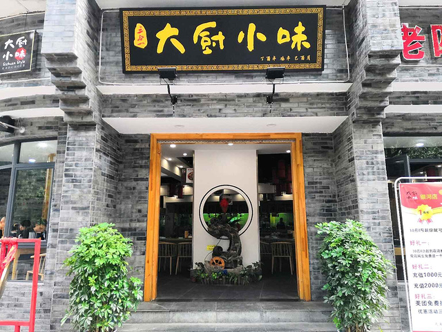 这家【大厨小味】很典型的川菜系的家常菜。一行4人,点了三菜一汤一面点。青椒巴沙鱼,分量很足,味道比较重,里面还有土豆粉铺垫,很大的一盆。素三样,藕片/青笋/苦瓜条,味道非常麻辣鲜香,值得说一下的是,苦瓜条处理的非常好吃,没有苦味口感清脆。我这个不吃苦瓜的人也觉得非常不错。鸭掌粉丝,粉丝很好吃很入味,鸭掌比较软烂易入口。锅边馍,很脆很甜。萝卜汤,非常家常味,成都人都喜欢这种无添加的食材本味。