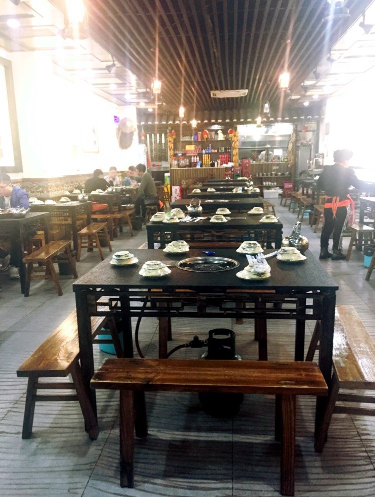 这家火锅店,在金阳会展城旁边,现在是下午1点半,店里的人还有好几桌。听说这边的牛肉用的是现杀黄牛,所以特地过来试一下。