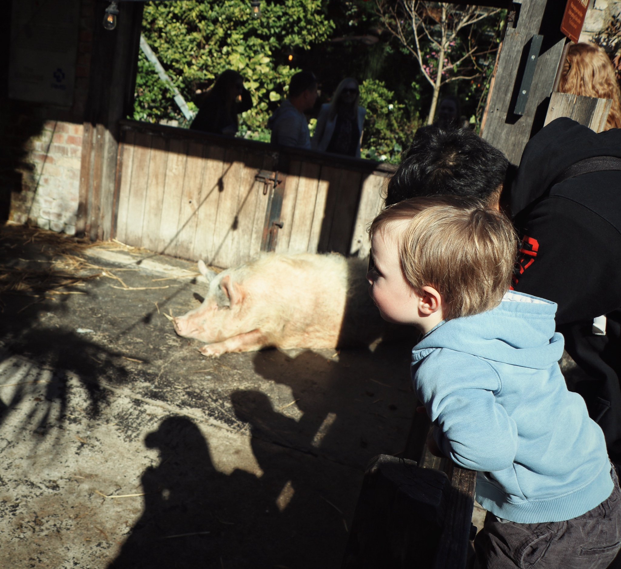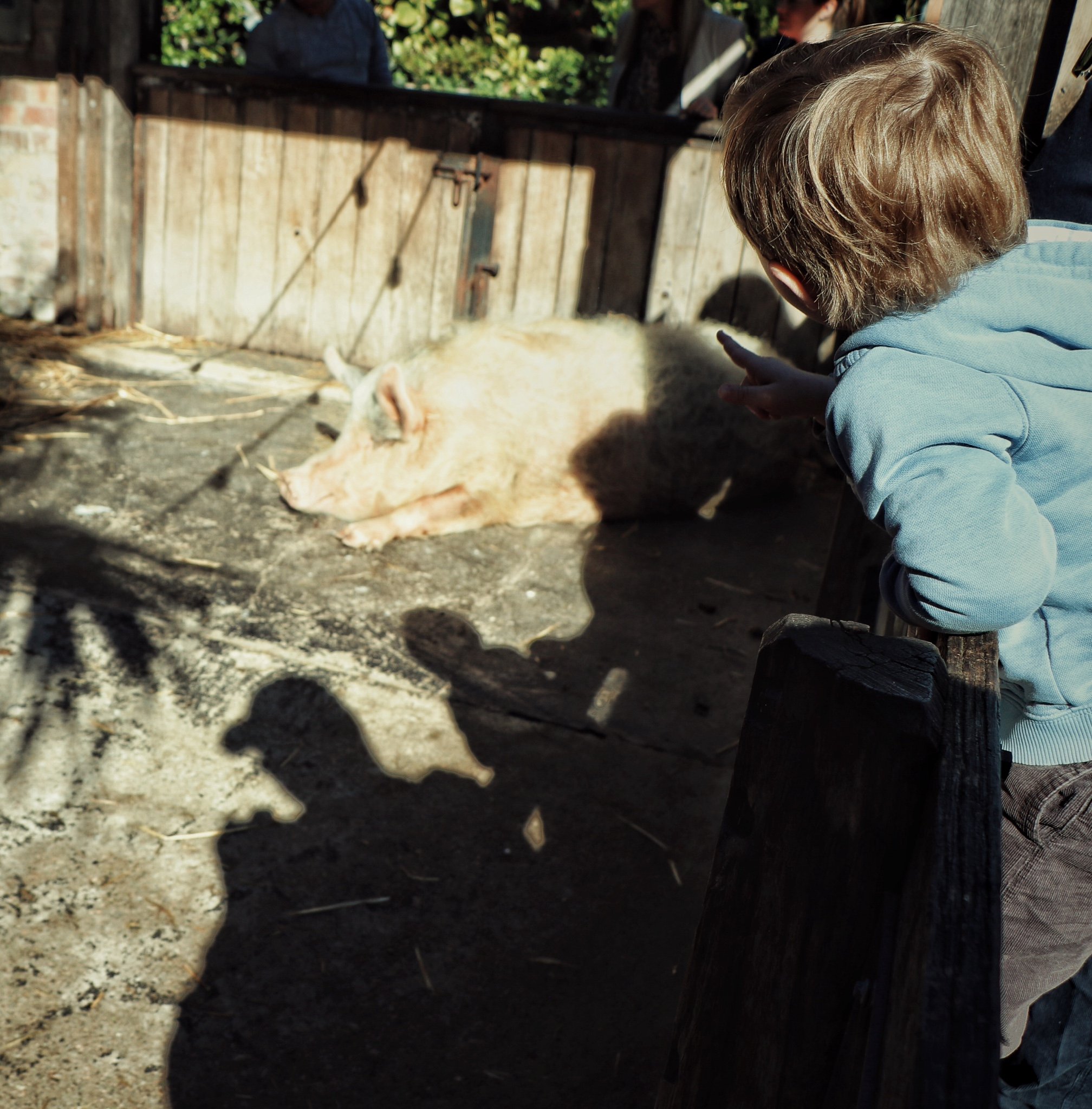 一个小朋友看到比自己还大的猪猪有点小激动哈哈哈
