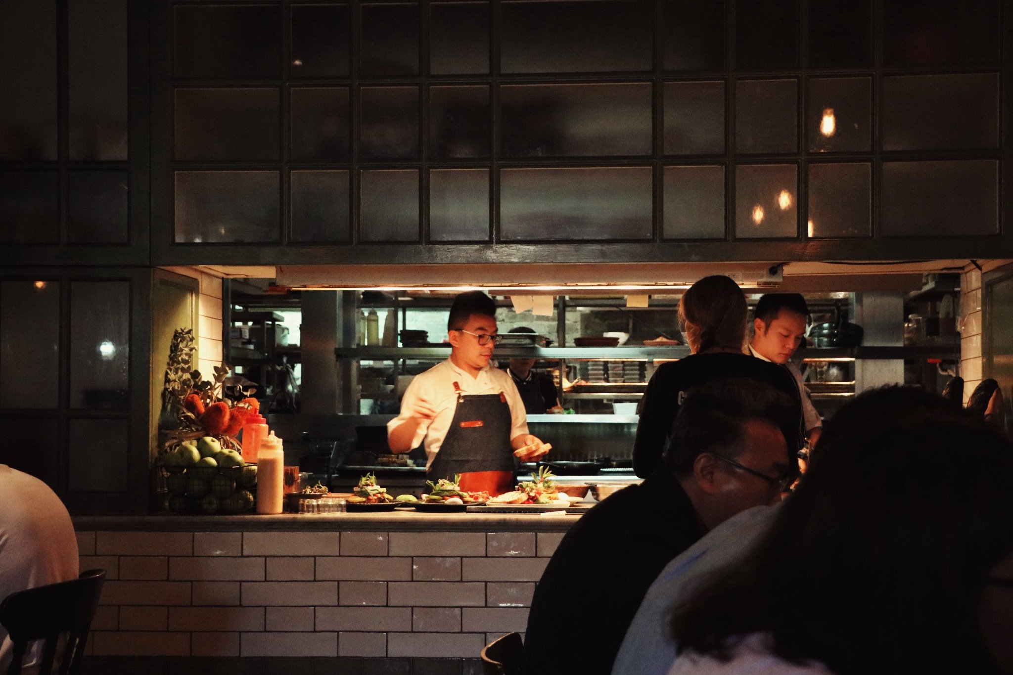我们的位置可以很清楚的看到非常忙碌传菜窗,不仅餐厅坐满了人,还有十几个人在take out处排着长队