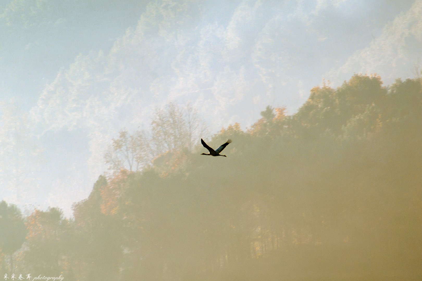 黑颈鹤也适时的加入。纱幔般的金色雾霭似裹着、或托着它们飞翔在山林中,田野上。