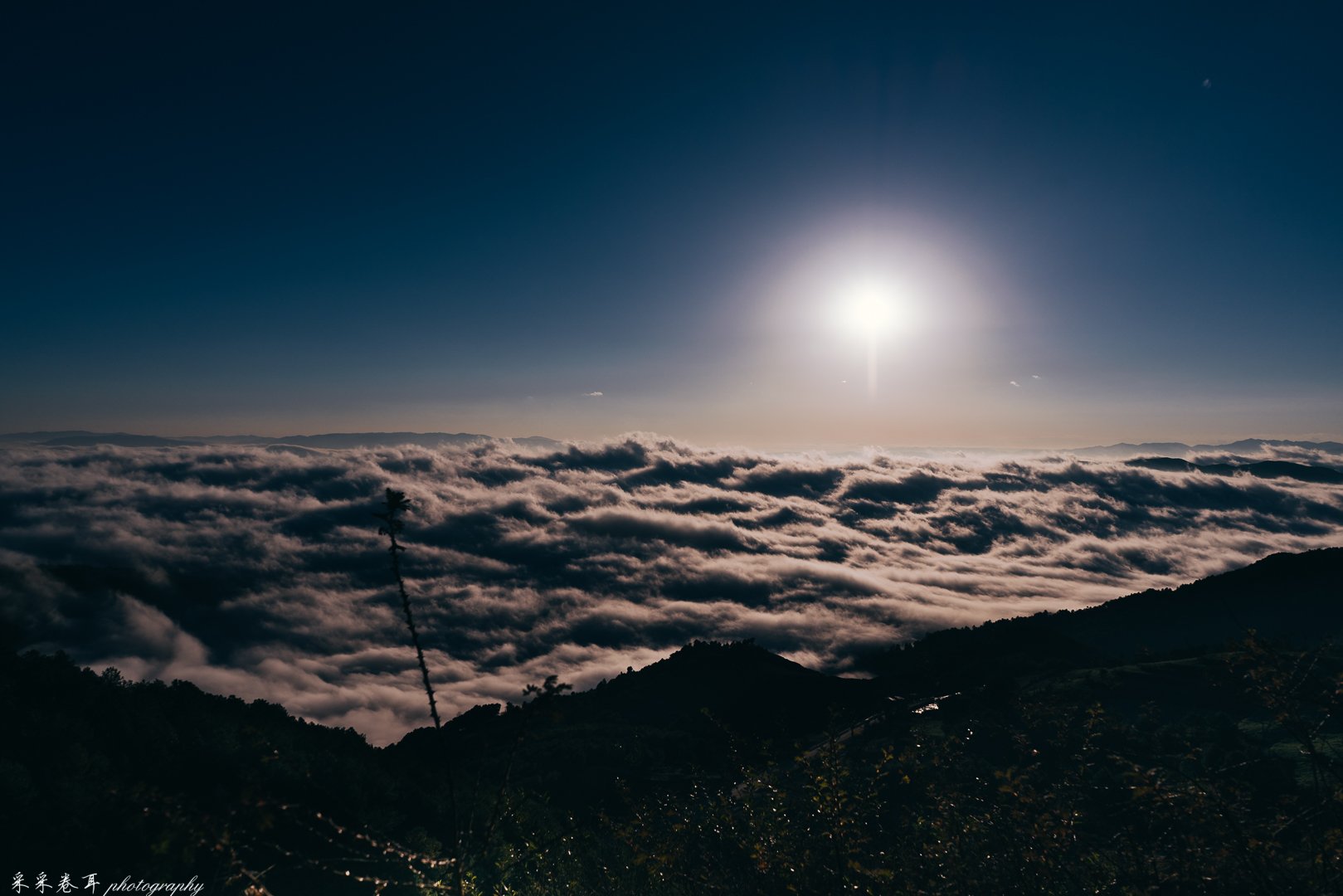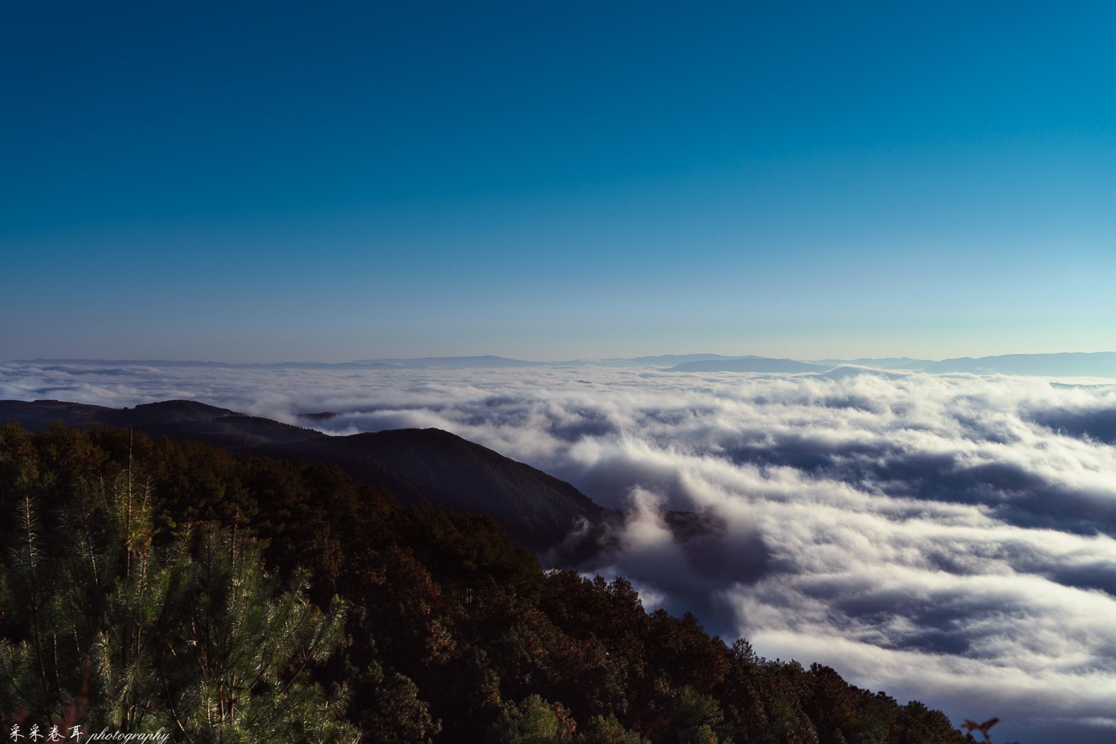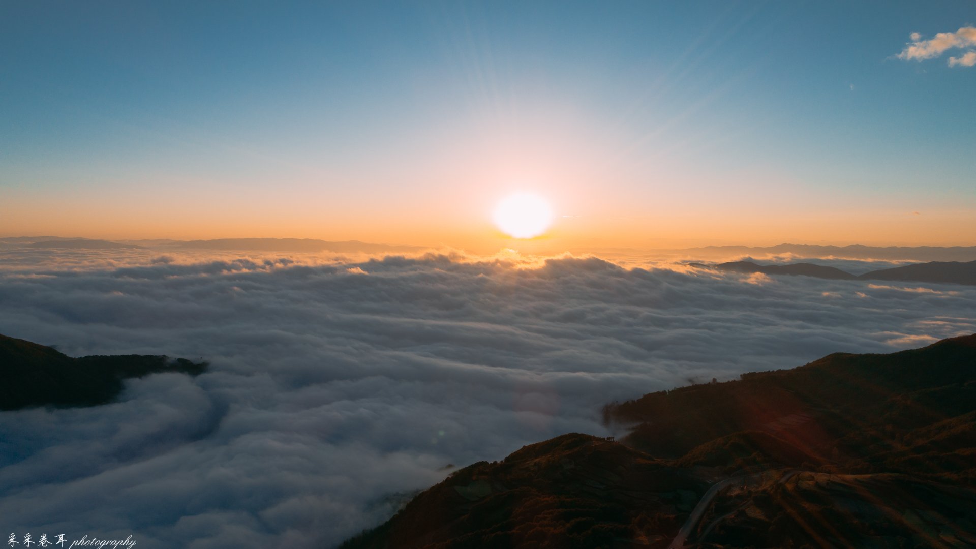 我们从未计划过要去某某山等候一场云海日出的视觉盛宴,所以在当下,我们的惊喜程度不言而喻。此刻逐渐高升的太阳正在给云海镀上美妙无比的 金边 ,远处的轮廓逐渐清晰—— 一!望!无!际!