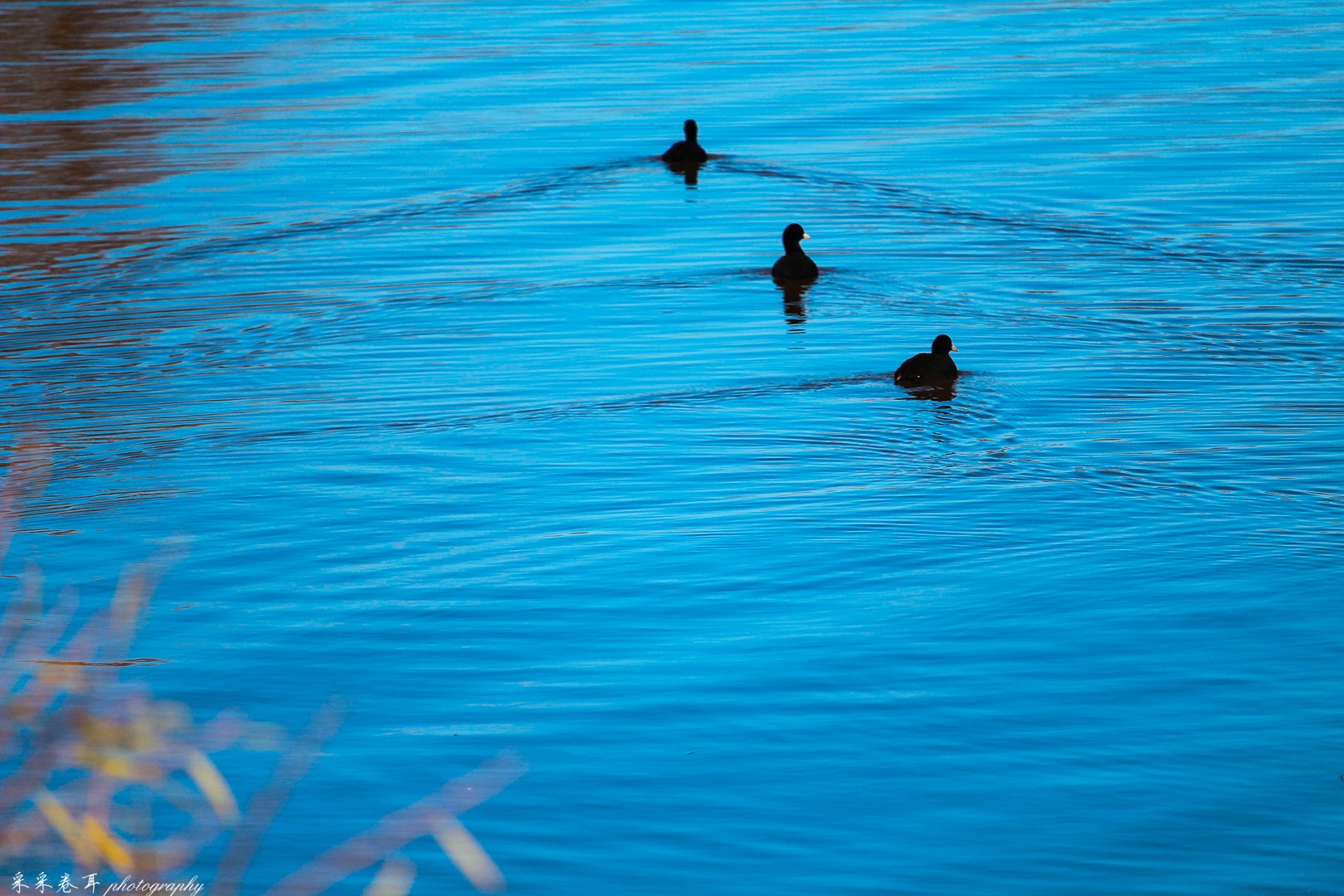 有的排成一队在湖水中任意游荡享受一段悠闲时光;