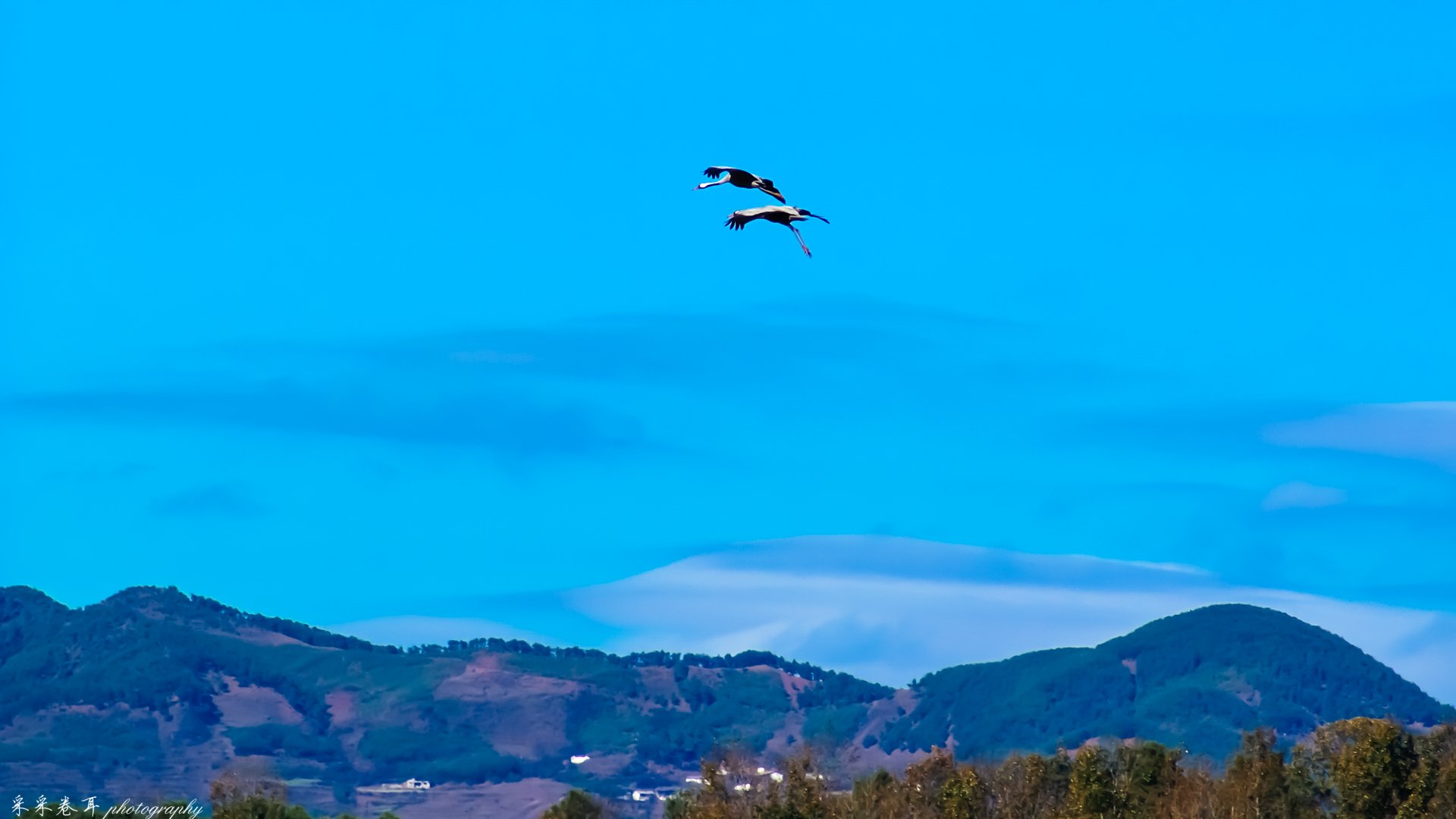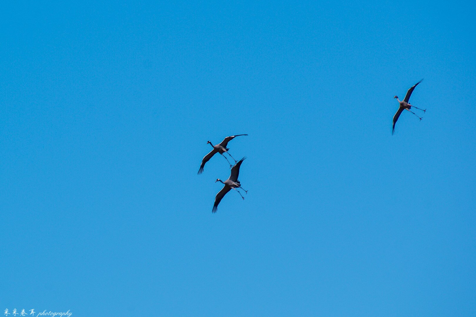鹤们用无论什么角度都无可挑剔的舞姿,优雅地装扮着蓝天,它们是这方天地中的精灵;