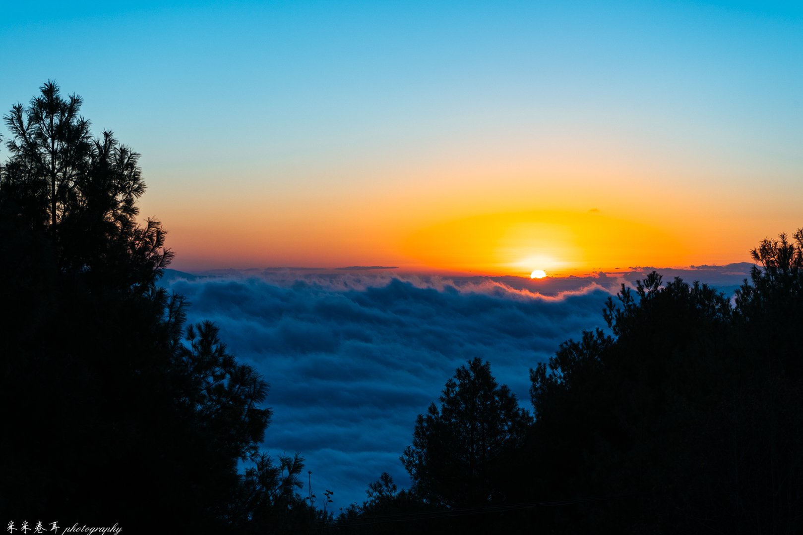 如果我们仅仅耽于眼前的曲折山路,这种稍纵即逝的景象就会被阴影中的松林埋没。但从松林缝隙中窥见的云海日出景象,犹为珍贵。
