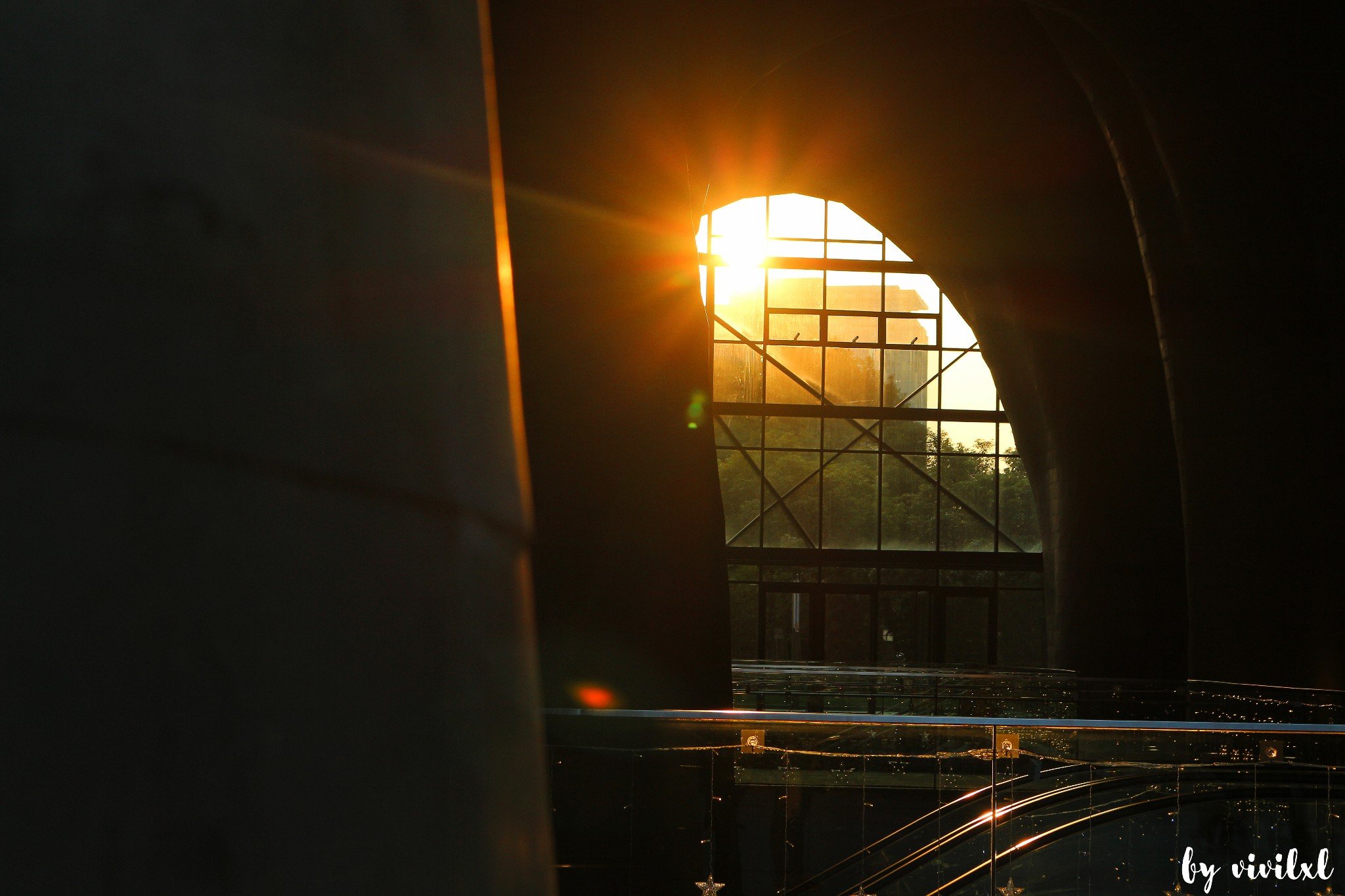 ▼下午日落时分的喜马拉雅中心地铁口,阳光的鲜艳透过玻璃,与周围的环境形成了鲜明的对比。