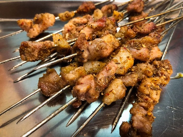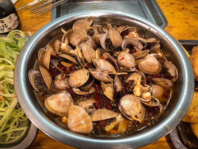 陈氏肥蛤搬到经七路小纬六路这边后,晚餐饭点依然爆满,来晚的要等桌。相对老店干净整洁了些,但细节卫生也别要求太多,一水小板凳小木桌就餐,能利用的空间基本都摆满了。这类店谈不上有啥服务,桌角扫二维码点餐。烧烤类则是随机送串吃完算账。晚上门口有些空位能停车,这点挺方便。 爆款菜就是店名里的肥蛤,有甜辣(分微甜和最甜两种)、鲜辣、蒜香、原汁等做法。肥蛤个头很大,用的不是济南海鲜市场的那种大路货,应该是有专门渠道。很多朋友反应搬新店后肥蛤里沙子很多,我运气好这次没遇到。 「甜麻肥蛤」 肥蛤个头巨大且肥美,但招牌甜辣口的调味则很一般,点的微甜,结果甜度高到压住了麻辣鲜香所有调味,浪费了这么好的蛤; 「鸡蛋炸馒头片」 用的馒头比街头那种好,更瓷实些,鸡蛋包裹煎炸后火候刚好,非常适合蘸菜汤; 烧烤类总体差评! 不管是「羊肉串」还是「肥牛」上面一半是单独的肥油,尤其后者一个大串上面四块肉,一半多是肥油,你这不叫肥牛,应该叫肥油串才对!「小红腰」烤的也一般; 「海味马家沟芹菜」用的海米品质差了点,马家沟芹菜倒是挺嫩,可惜调味放了太多味精之类的调料,不推荐; 饮品类都是瓶装成品,推荐「桂花酸梅汤」和「山楂树下果汁」。 有点怀念3⃣️年前逍遥龙虾堂的肥蛤和小龙虾,可惜时光不再。现在人气较好的陈氏肥蛤和三盛肥蛤都有点“山中无老虎”的意思。