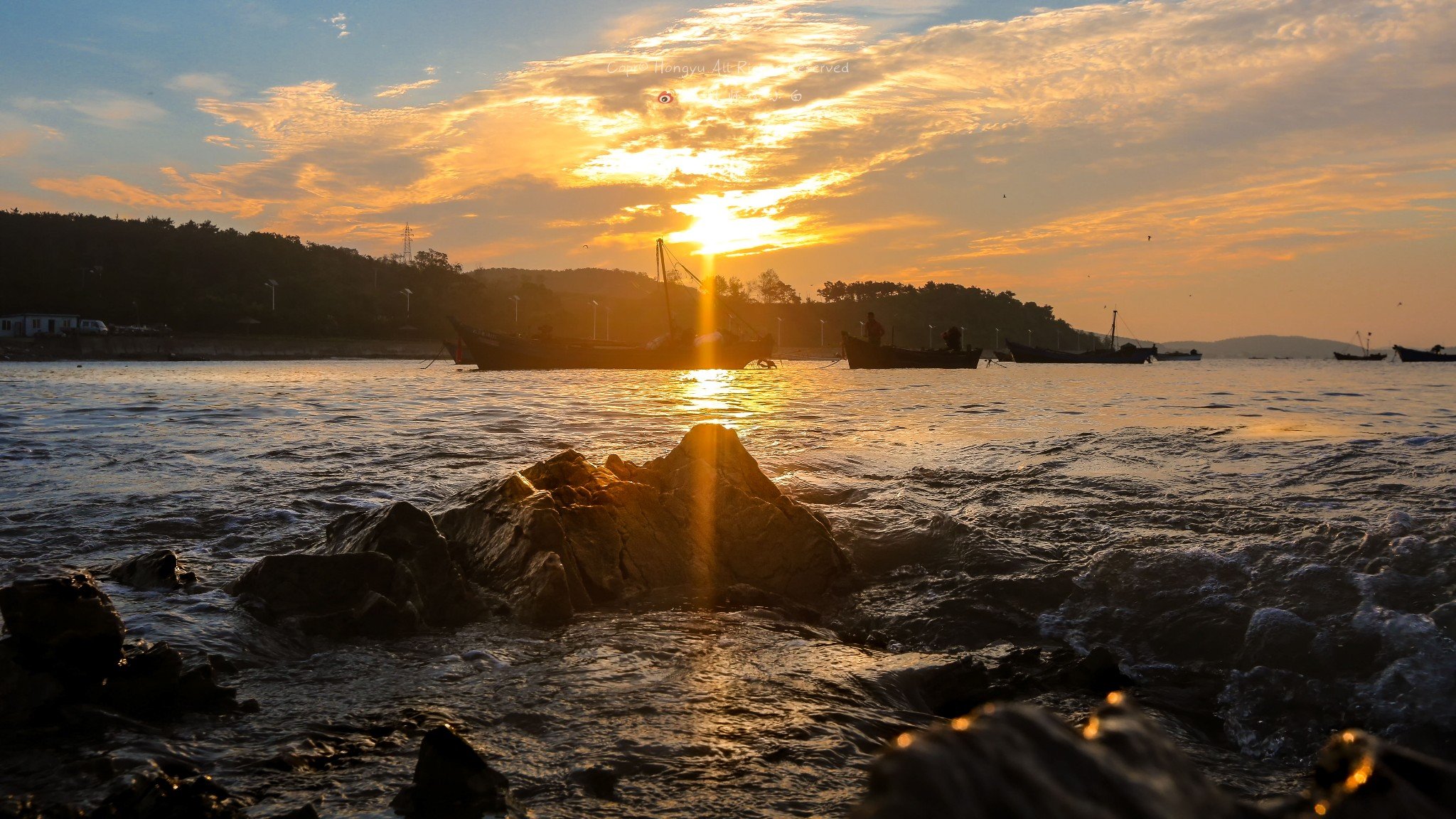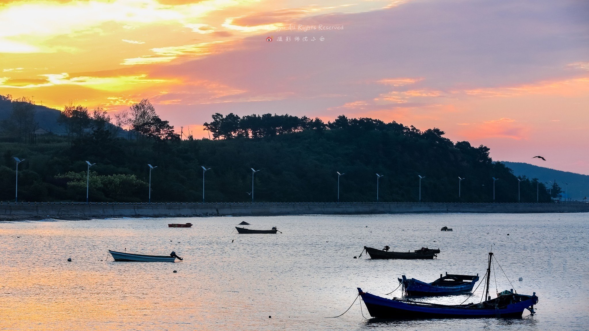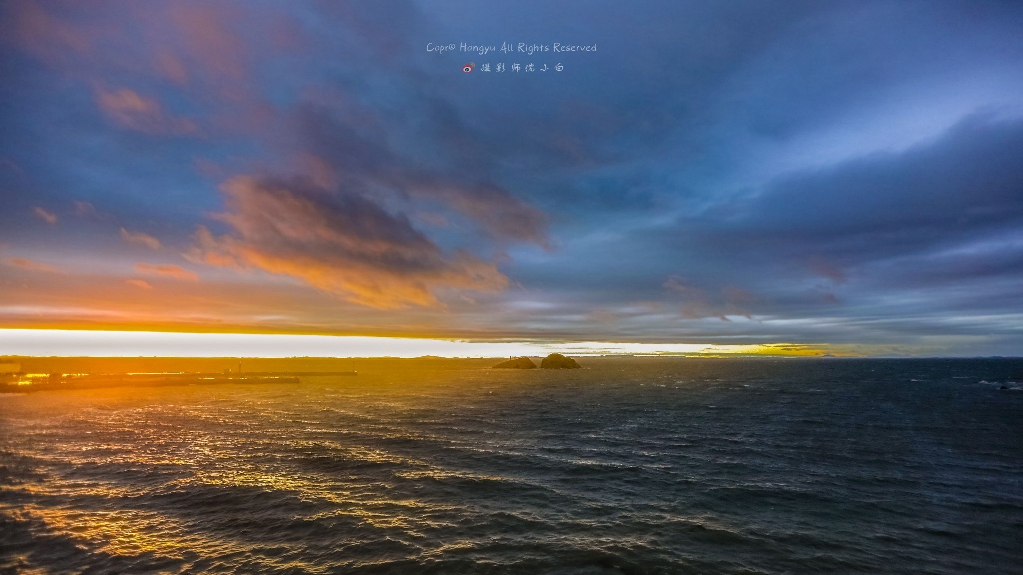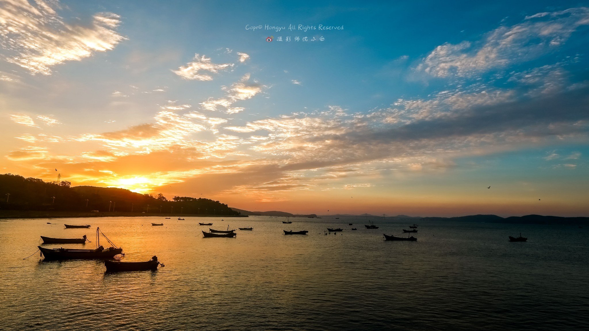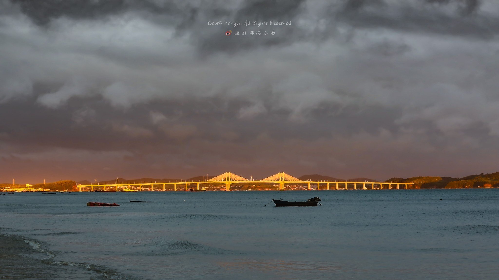 远处连接大长山岛和小长山岛的跨海大桥此刻被染成了金黄色,