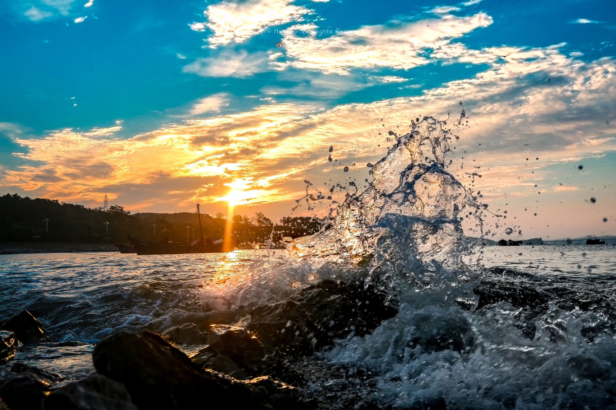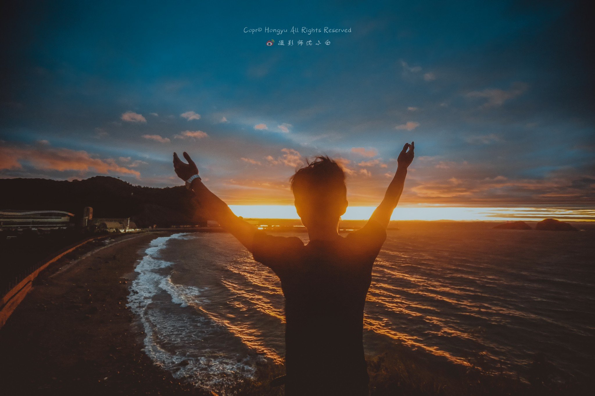 台风过后,暴雨停歇,我扛着相机去海边准备拍一个延时,突然镜头里慢慢变黄、变粉、变红,