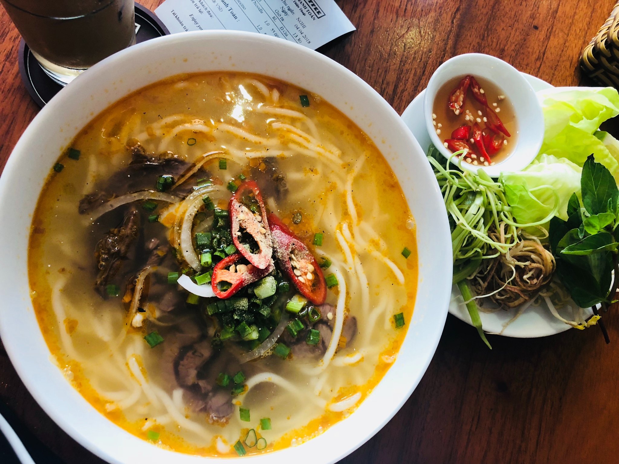 当我们已无法尝试新美食种类的时候该怎么办?由于语言不通的原因,机器猫也会被迫吃很多相同的东西,例如 noodle soup。 为什么呢?因为酒店的工作人员每天都告诉我其他的东西没有了,或者我点了其他的也上的是noodle soup. 在这种情况下也懒得再争辩了。所以记得吃noodle soup的时候,还可以吃鸡肉的、猪肉的、牛肉的、鱼肉的。要记得牛肉粉也有不同的种类 比如 我在 芽庄 的最后一顿饭,ICED COFFEE 这家咖啡厅里,第一个点的鱼肉也没有,传统的牛肉粉也不想再吃了,这时候我发现了一个叫Hue Style Beef Noodles,后来查了一下Hue应该是个 越南 城市名 顺化 ,这个牛肉就是偏腱子肉的,也还可以吧,算作了一个新收获。没办法,一个人在路上,只能用这些小细节来取悦自己啦。