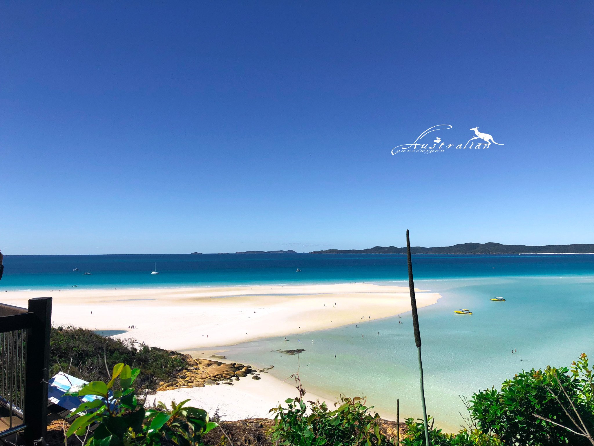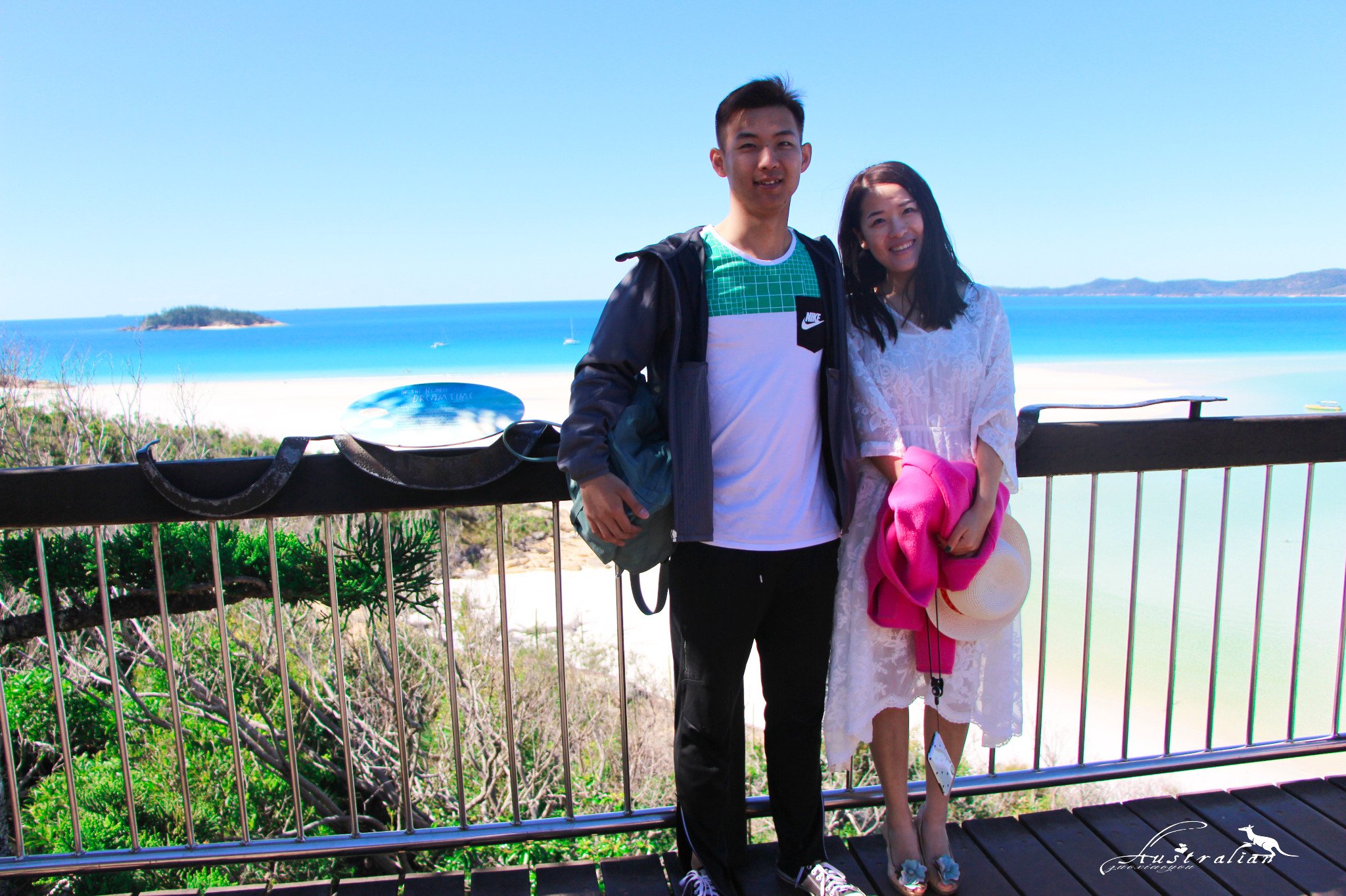 浮潜过后,船长就带我们来到希尔湾观景台。我们到了岛的另一头上岸,一片原始风貌,然后爬很长的一段台阶,我还穿着高跟鞋~重点鞋子也坏了。。。崩溃中,赤脚走贼疼。不过当爬到观景平台,我们发现之前一切辛苦都是值得的!站在观景台上,都忘了要拿出相机,眼前这片蓝白间隔的纯净海湾把大家都看呆了!