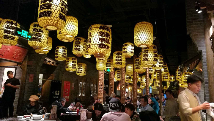 约了好久的饭,终于成行了,我们选择了去吃南京大排档品尝金陵菜系,由于去的早,所以不用等位,一旦到了饭点,人就会超级多。我们一行三人,点了糖醋排骨、金牌煎饺、烤鸭包、泡椒鸡、一品毛血旺、招牌盐水鸭、美龄粥、鸡汤馄饨、古法糖芋苗以及赤豆元宵,吃到撑,总共花费两百多。 接下来说说每一道菜,糖醋排骨很甜、很大块,共有四块,每一块肉也很多,一人吃一块刚好,吃多了可能会腻;金牌煎饺一盘只有三个,块大、馅足;烤鸭包汤汁多,吃的时候要小心,不要喷出来溅到衣服上哦!还好运气好的我避免了这一惨状。由于吃的太快,所以没有仔细品尝出包子里的鸭肉。泡椒鸡不辣,感觉一般,底下有很多菜;盐水鸭咸淡适中,并没有太大惊喜;美龄粥口感较好,甜甜的,营养健康;古法糖芋苗和赤豆元宵我都品尝了一下,个人更喜欢赤豆元宵,到店必点的甜品;鸡汤馄饨一碗很小巧,汤不错,馄饨也好吃,但要小心烫哦!一品毛血旺是最后点的菜,因为前面吃的感觉都偏甜,所以想吃点辣的,这下咸甜辣就都尝遍了,毛血旺很大一盆,出乎我们的意料,所以感觉这是点的最实惠的一道菜。南京大牌档的装修风格古韵十足,仿佛令人置身于金陵繁华市井中。在这里除了可以吃到南京美食,还能听苏州评弹,可以说是十分享受了。总而言之,这家店还是比较值得去去吃的。