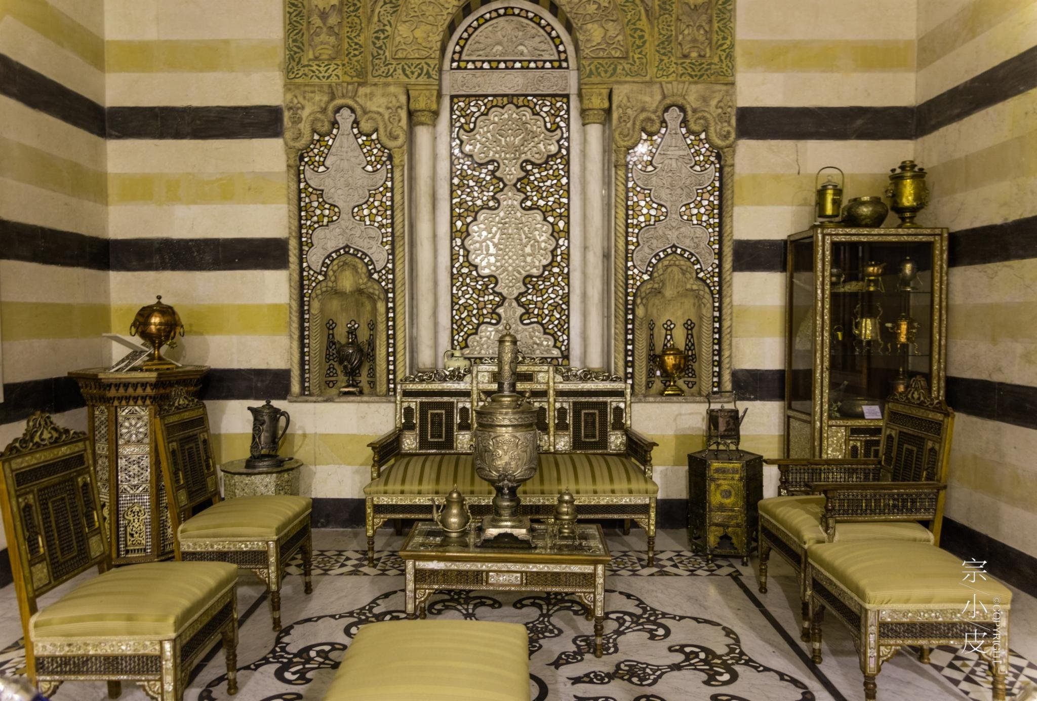 博物馆内最有价值的是藏有一处完整的叙利亚传统民居院落。这处院落是从叙利亚整个搬迁而来,从中可以看到叙利亚传统民居中包括家具、陈设、雕饰等的风格、特色。