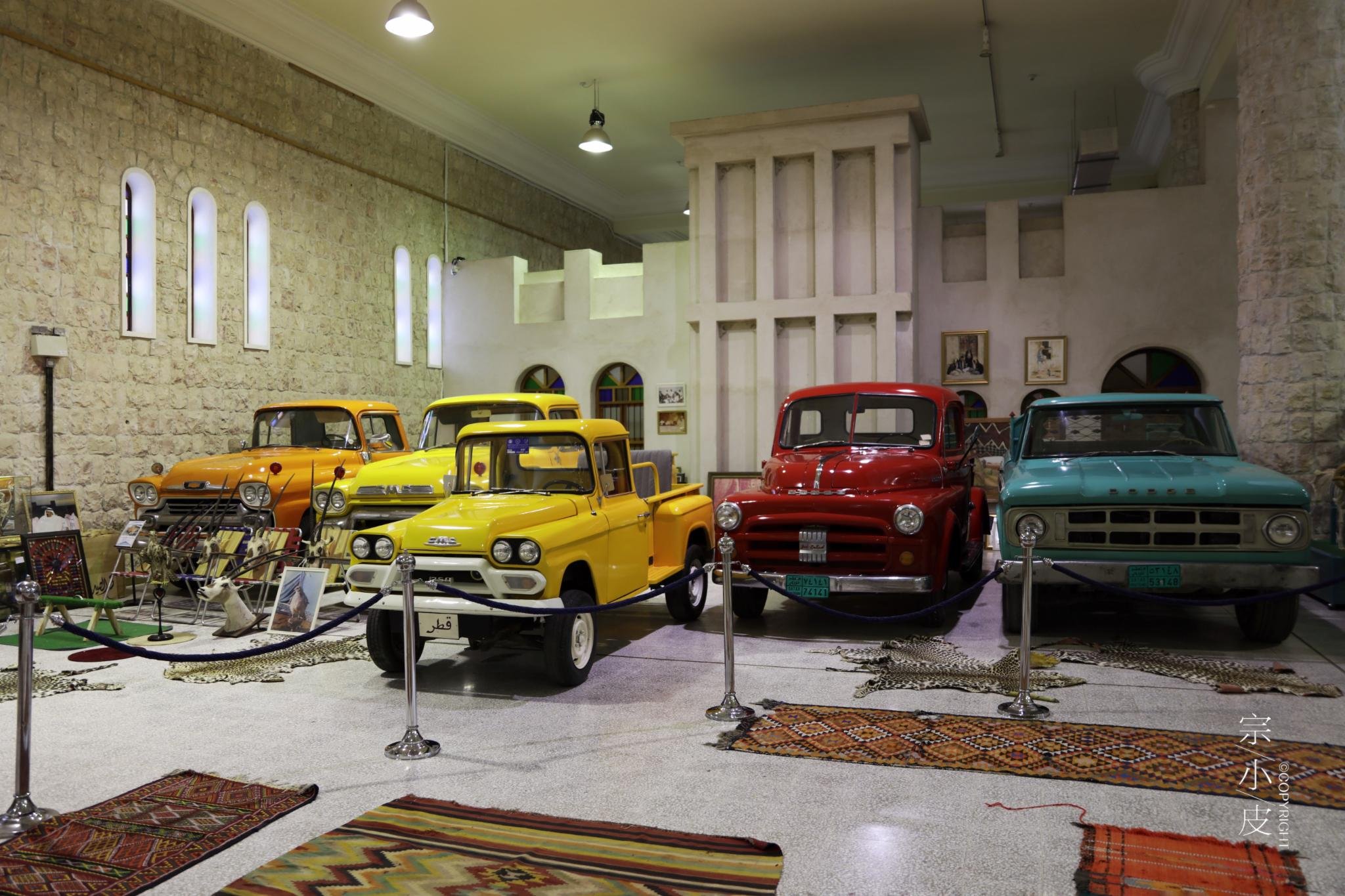 除了伊斯兰艺术博物馆,在卡塔尔还有一家博物馆值得一去,它与伊斯兰艺术博物馆不同,是一家私人博物馆,简称阿勒萨尼酋长博物馆(Sheikh Faisal Museum),阿勒萨尼是姓。其实这个酋长博物馆的全名,很长很长很长,谢赫·费萨尔·本·卡西姆·阿勒萨尼酋长博物馆(Sheikh Faisal Bin Qassim Al Thani Museum)。酋长自幼喜爱收藏,这个博物馆没有伊斯兰艺术博物馆讲究的陈设,更像个大仓库一样藏着酋长所有的藏品,小到烟盒大到飞机,什么刀枪、服饰、家具、乐器、老爷车、帆船,甚至医疗器械,真是各种门类五花八门无所不有。