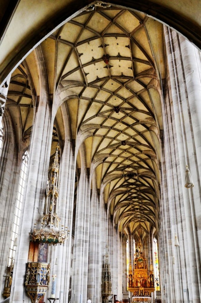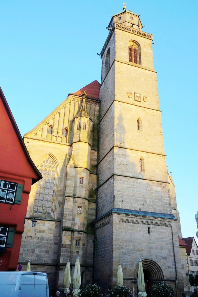 圣乔治大教堂(Muster St.Georg),是德国南部最纯粹的后哥特时期教堂之一,外表可能有些简陋,内部装饰却极其华美。这个泛着灰色的古老建筑夹在一片色彩斑斓的彩色房屋之间,有一种历史的厚重感。可以爬上教堂顶端俯瞰这个小镇,不过登顶好像只有周日才对游客开放。