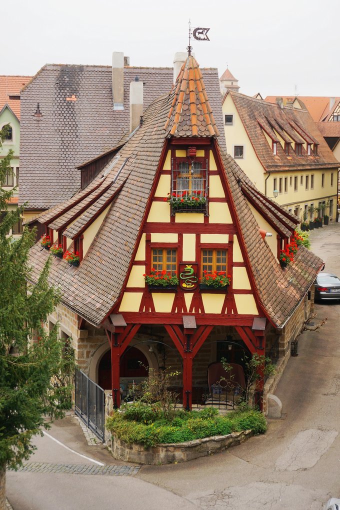 步云莱是罗滕堡的一个地标,Lonely Planet德国的封面。Y字形的道路寓意着人生的分岔路,石板路在这里一分为二,呈且顺着地势有不同的坡度。小路两边是美丽的传统木框架房子,这里几乎是罗滕堡童话小镇的缩影,是到罗腾堡必到之处。