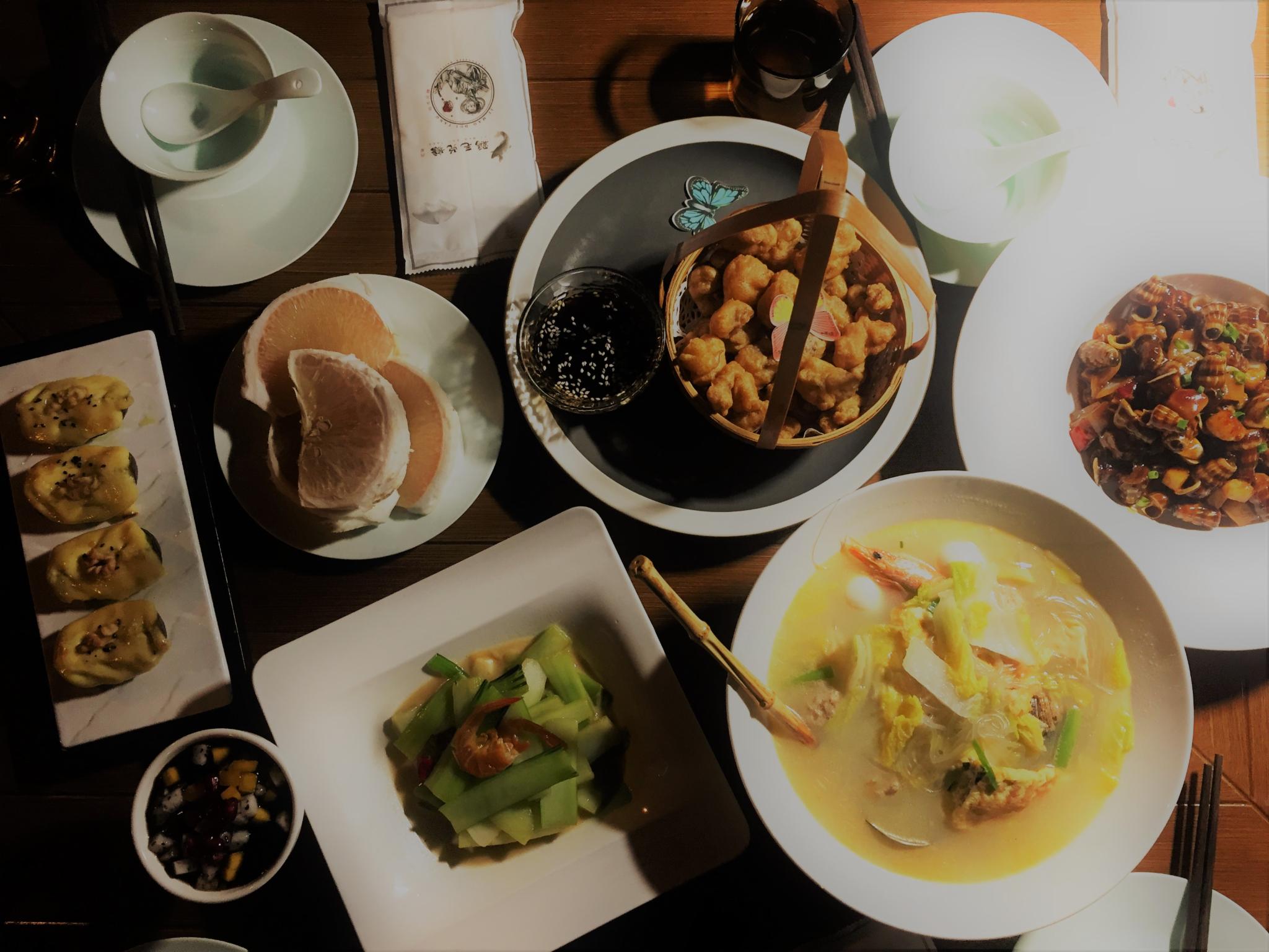鸡毛兑糖·尚宴(鄞州店)是家精致的、适合商务宴请的饭店,当然有些菜品价格不低,客人不少,建议提前预约。十月的宁波可以坐在室外用餐,而且温度适宜,无蚊虫叮咬,这点和东北的区别还是蛮大的,在东北只有夏天才能享受在室外用餐的乐趣,但要做好防蚊虫叮咬的措施。