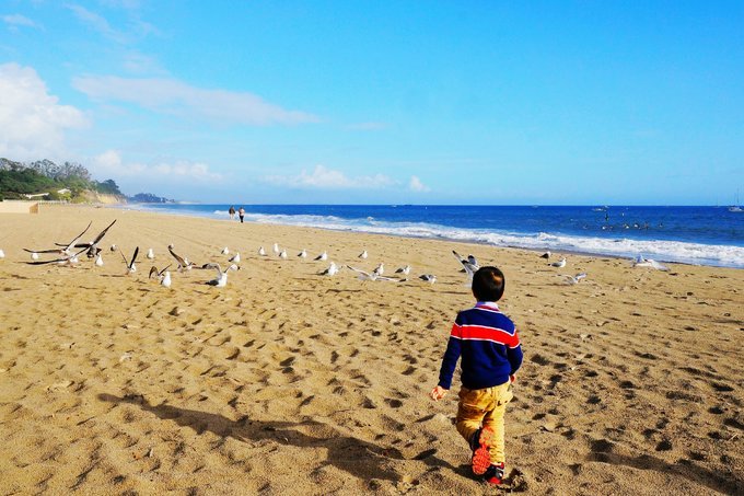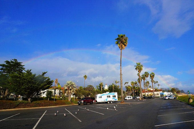 典型的亚热带气候,一会晴天灿烂,一会又凉风骤雨,在圣巴巴拉东海滩,我们看到了有生以来看过的最美彩虹