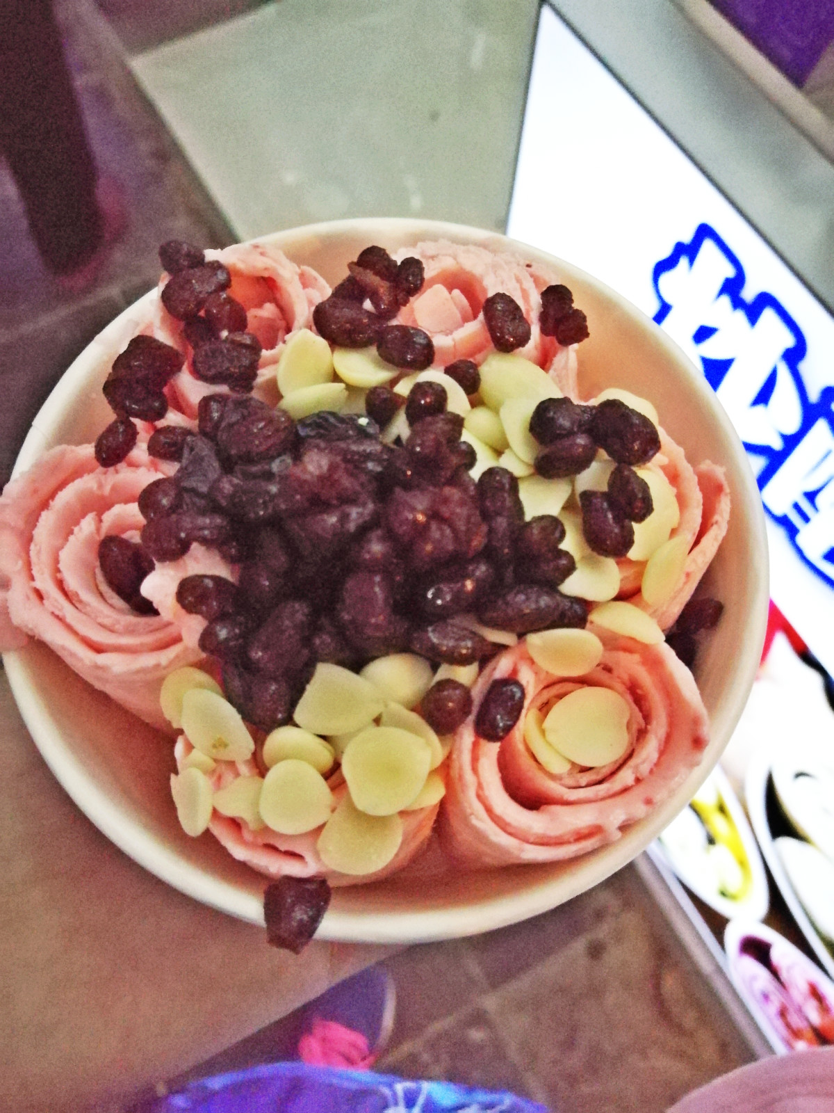 有一家花菲小镇卖各种花茶,我看到门口有免费品尝的奶油草莓,按克散售,味道很香。注意来回民街的时候一定要穿防滑的鞋子,因为两边的牛羊肉太多了,地上都是油,穿高跟鞋很容易滑倒。