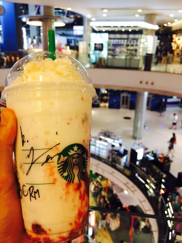 找了一个风景独好的位置,看着来来往往穿梭在商场的 泰国 人,后悔点了当时的新品草莓星冰乐,真的要多难喝有多难喝。 泰国 小姐姐不会写中文我就自己签上了自己的名字哈哈哈。